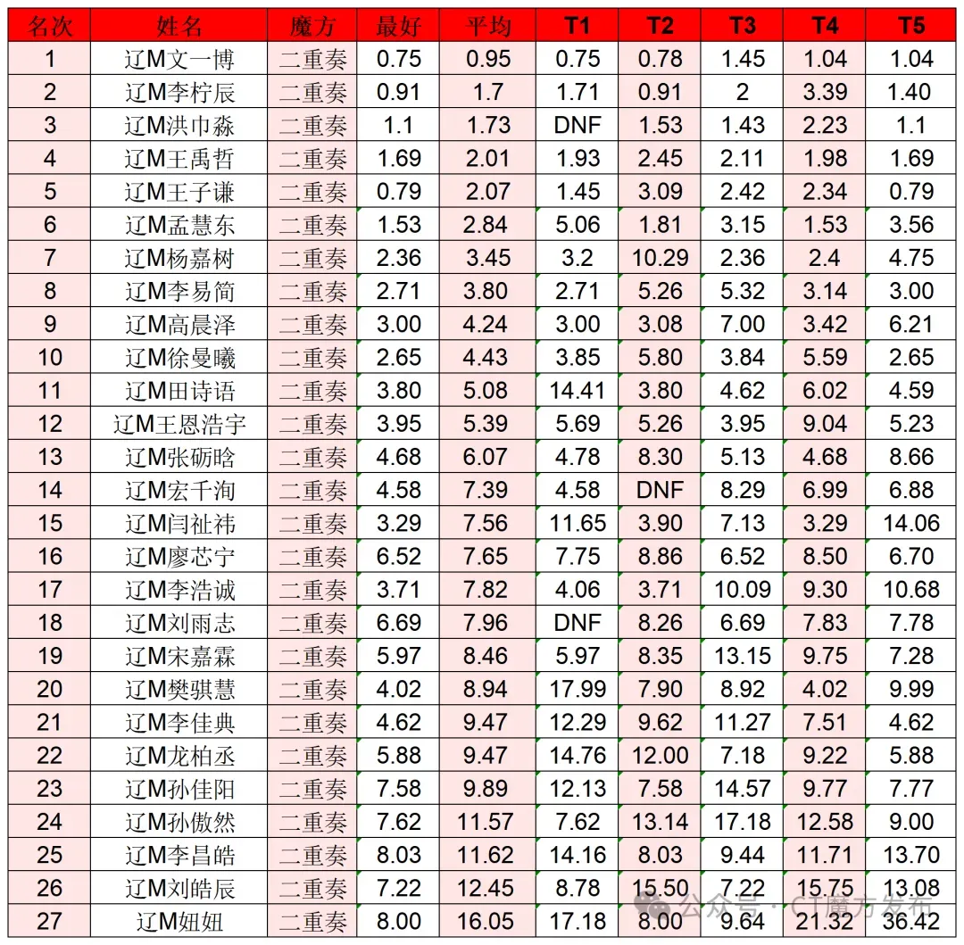 铁岭魔方排行榜(数据提取辽宁魔方公开排位赛第45周)