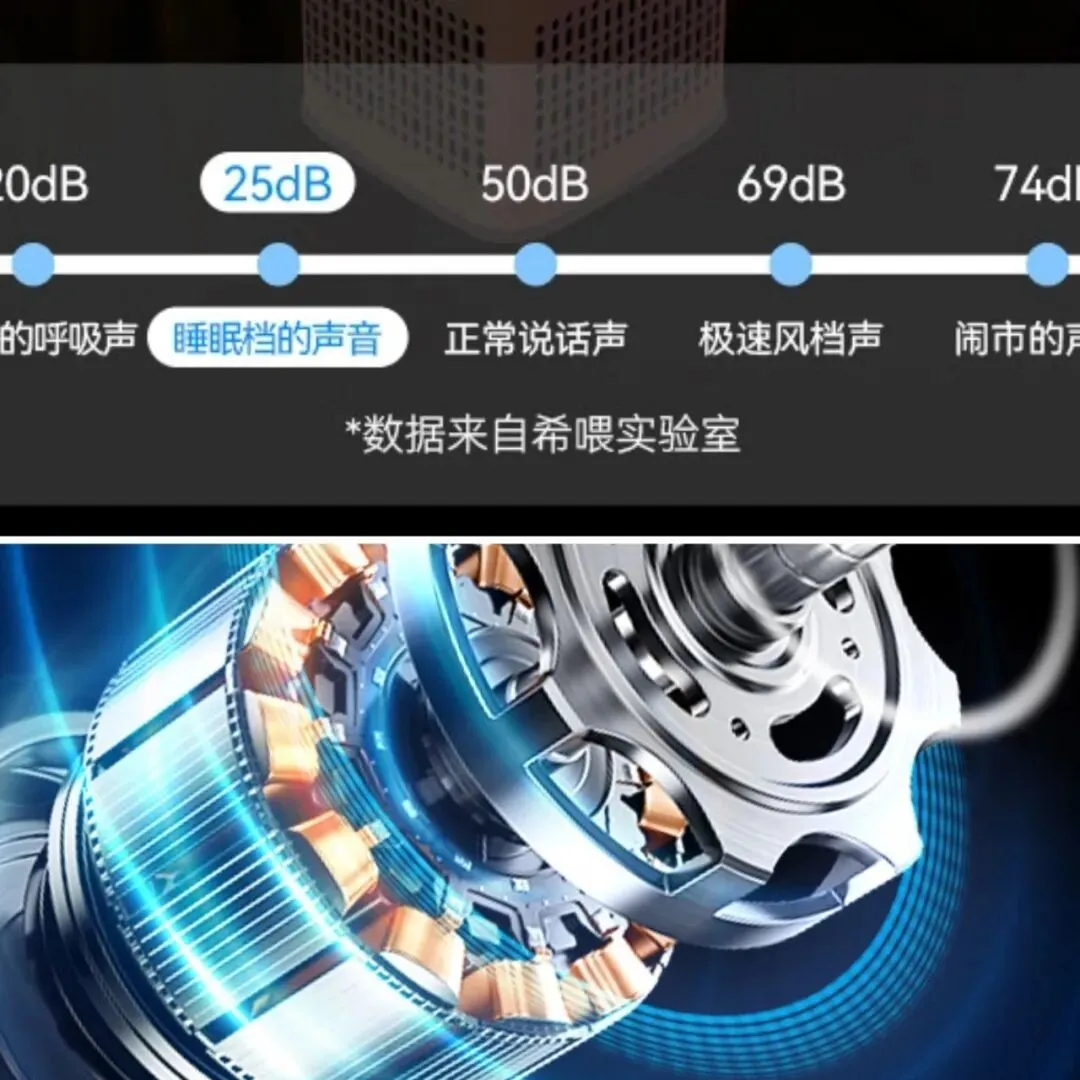 4)静谧低噪体验:噪音控制极佳,最低噪音 26.6dB,运行轻柔安静,24 小时开机也不影响生活与睡眠。