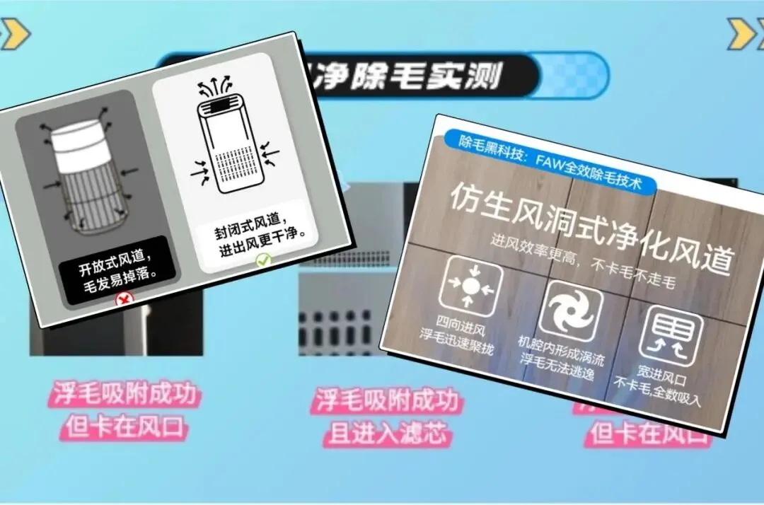 风量决定空气循环速度,进风结构决定浮毛能不能被“截住”。只有风量够、进风面积合理,才能把飘在空中的猫毛和皮屑及时吸进机器,而不是在屋里来回打转。