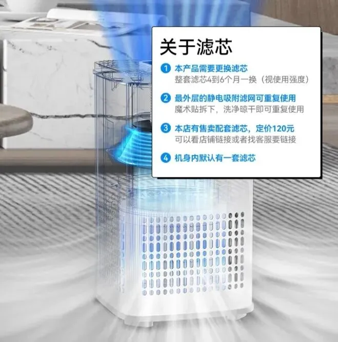 3)强力祛味净化:配备高规格活性炭滤网,可强效吸附宠物体臭、排泄物异味等多种异味源,快速改善室内空气气味,让养宠环境长期保持清新。