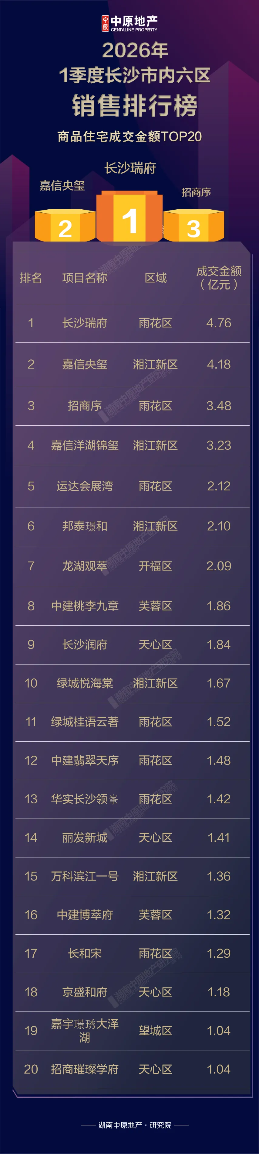 【重磅】2026年1季度长沙楼市销售排行榜