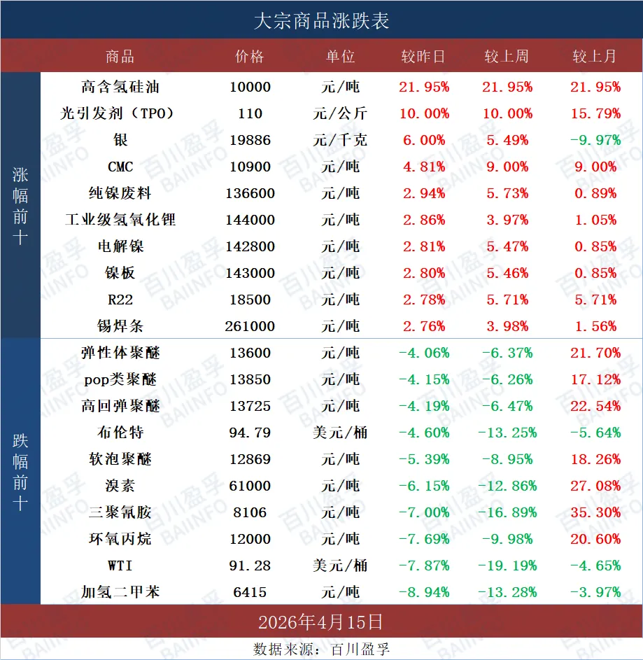 有机硅高含氢硅油市场高位盘整,高含氢硅油主流报价在10000-12000元/吨附近。部分大厂自用为主,外销收缩,现货偏紧。下游多持逢低适量补库心态,部分为规避续涨,刚需备货放量。企业控量挺价,供需紧平衡运行。