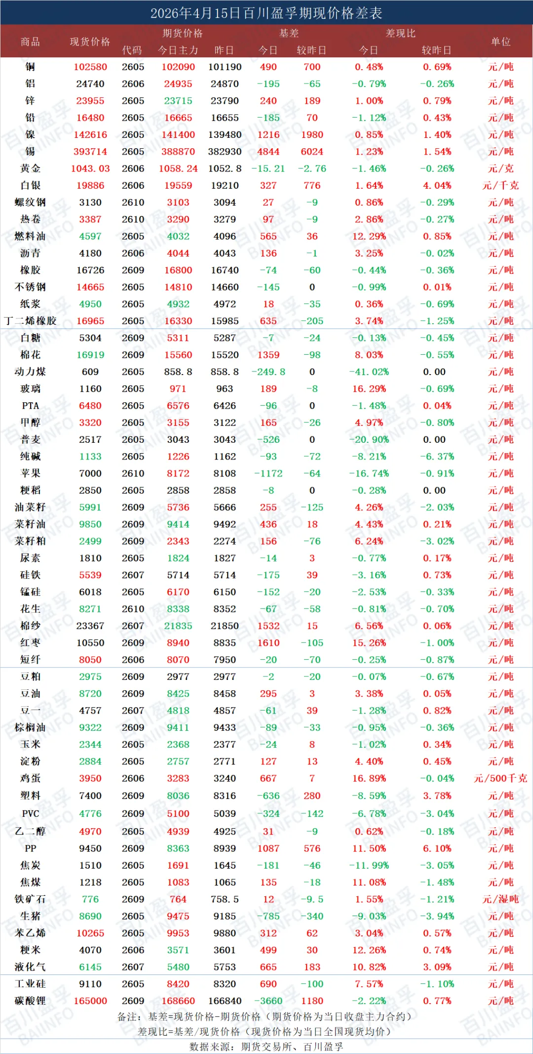 今日期现价格差表