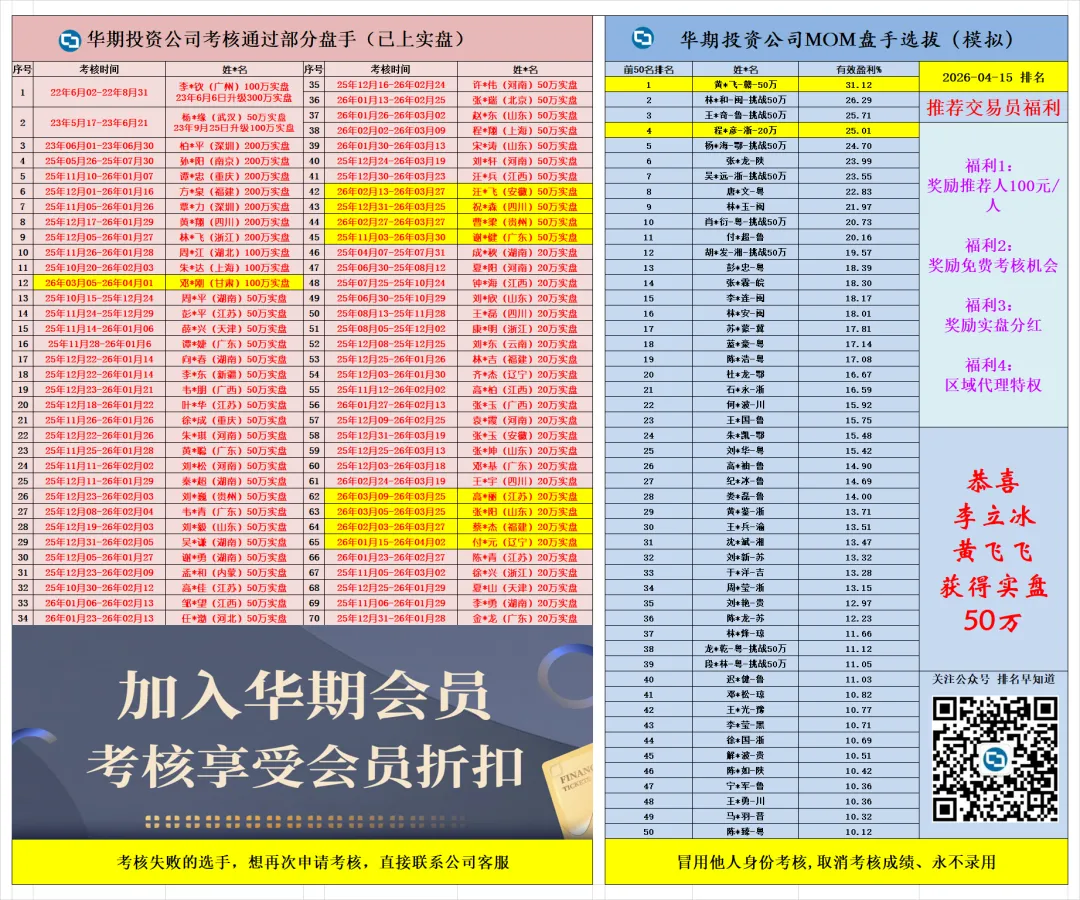 ↓华期考核前50名排行榜↓