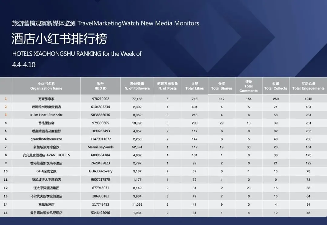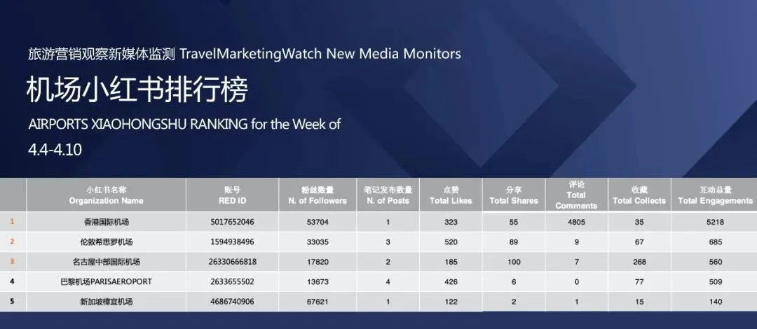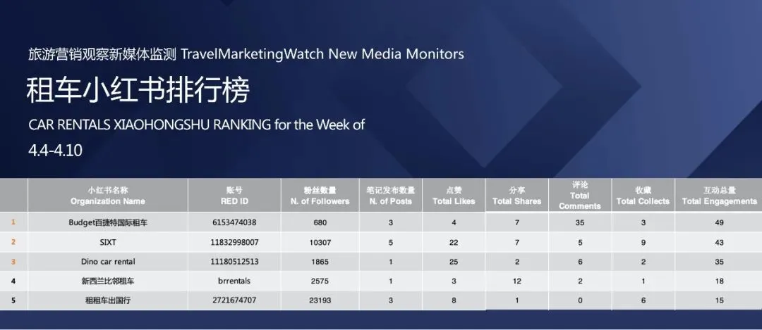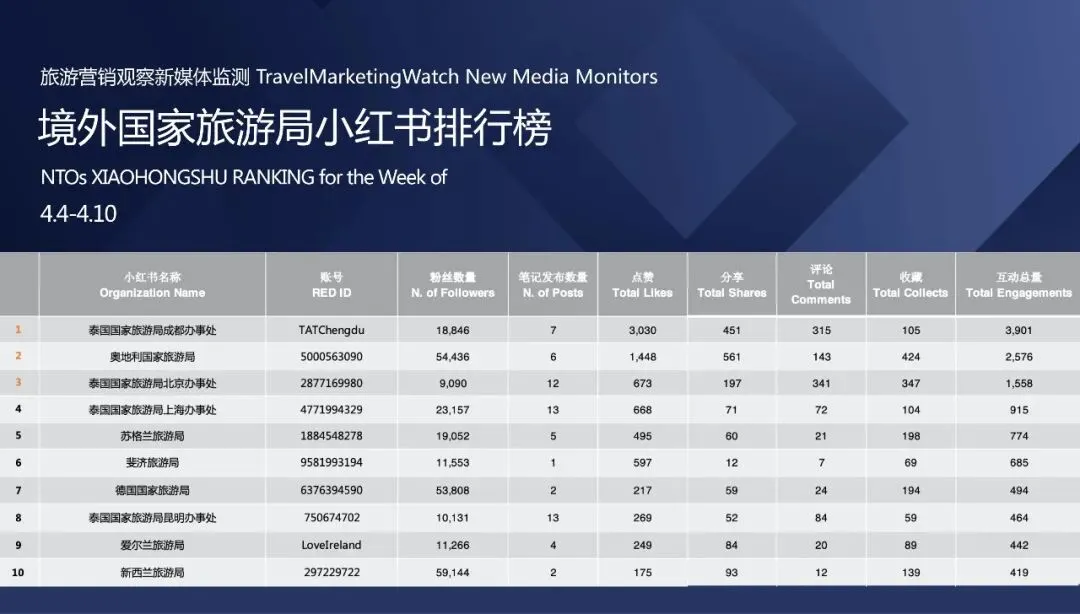 榜单 | 旅游品牌【小红书】影响力排行榜(4.4-4.10)