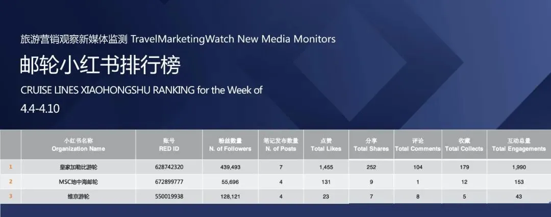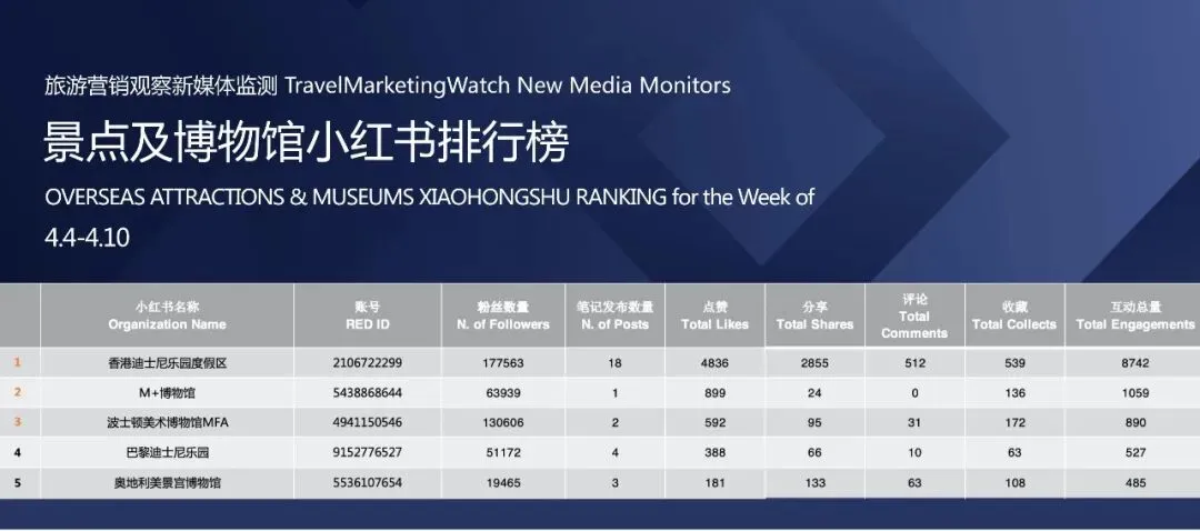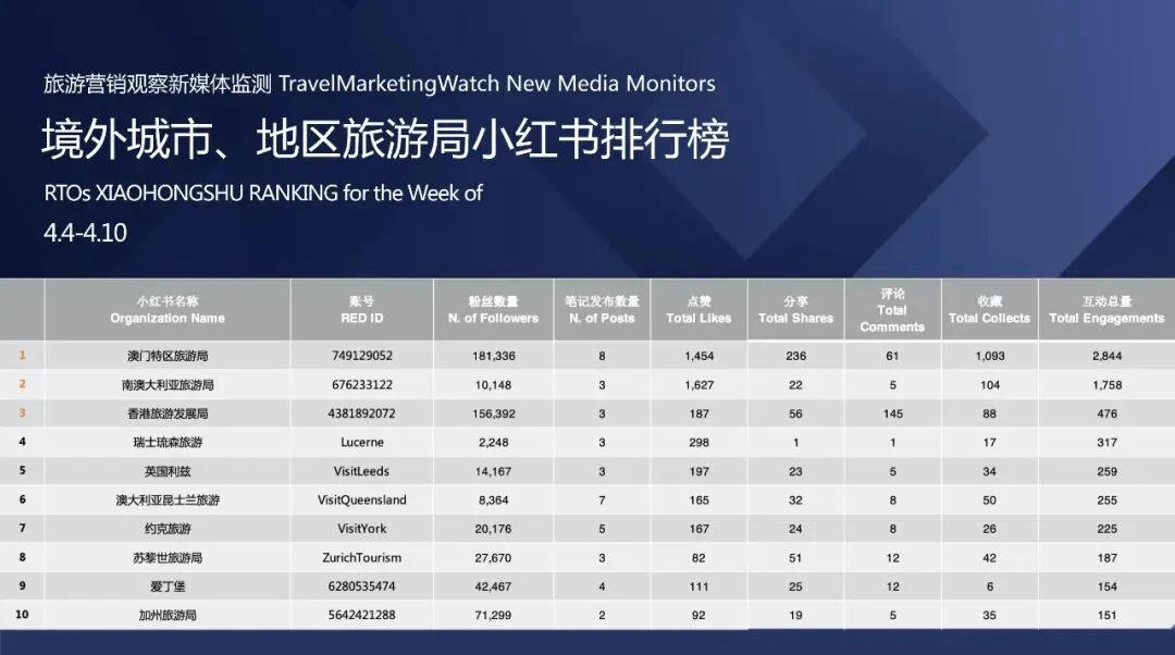 榜单 | 旅游品牌【小红书】影响力排行榜(4.4-4.10)