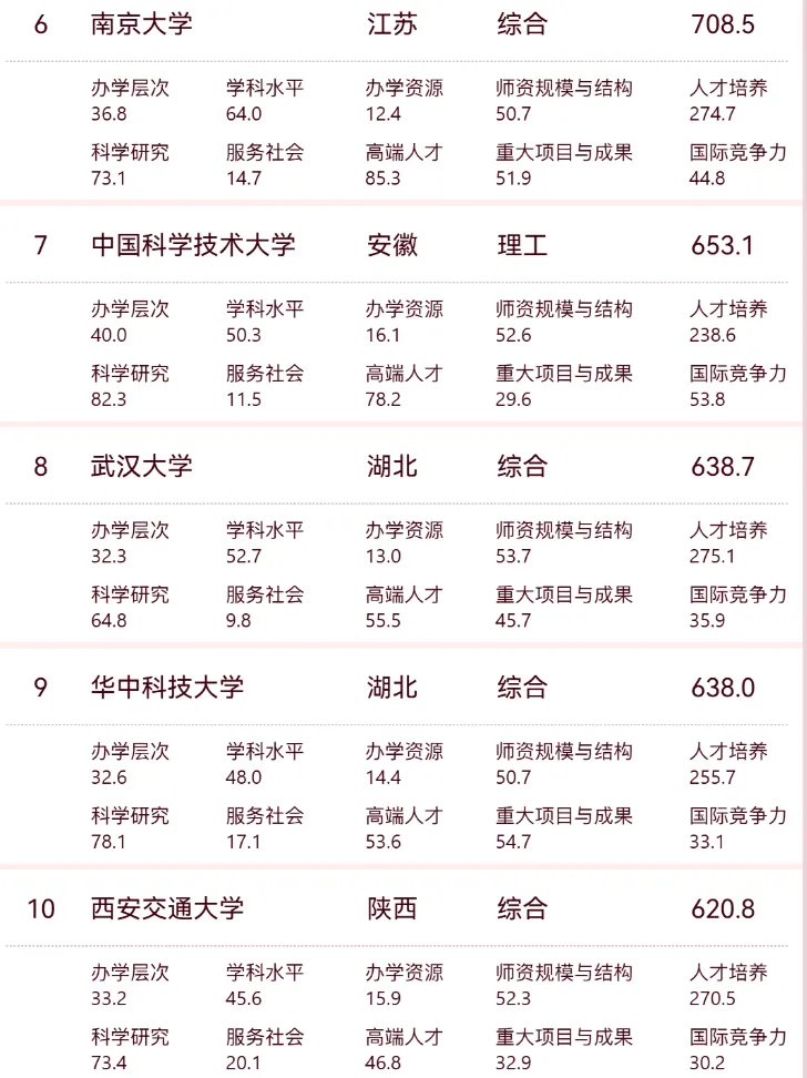 西交大从2015年到2018年的全国第8-9位,到这七年一直作为前十守门员令人唏嘘,想当年交大主要班底迁到西安时候,排名分数都是比重建中的上交高不少的。但不管怎么说还是要祝贺两所交大办学130周年校庆,前十里一直占住两席还是很不错,都还是中国的超一流水平。
