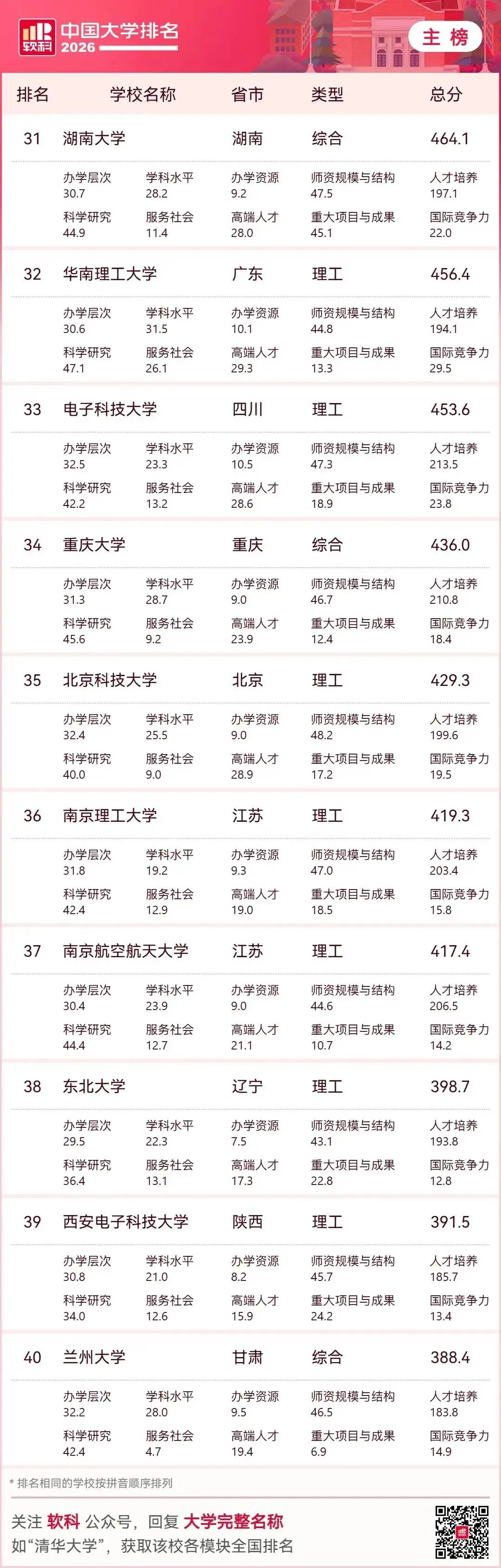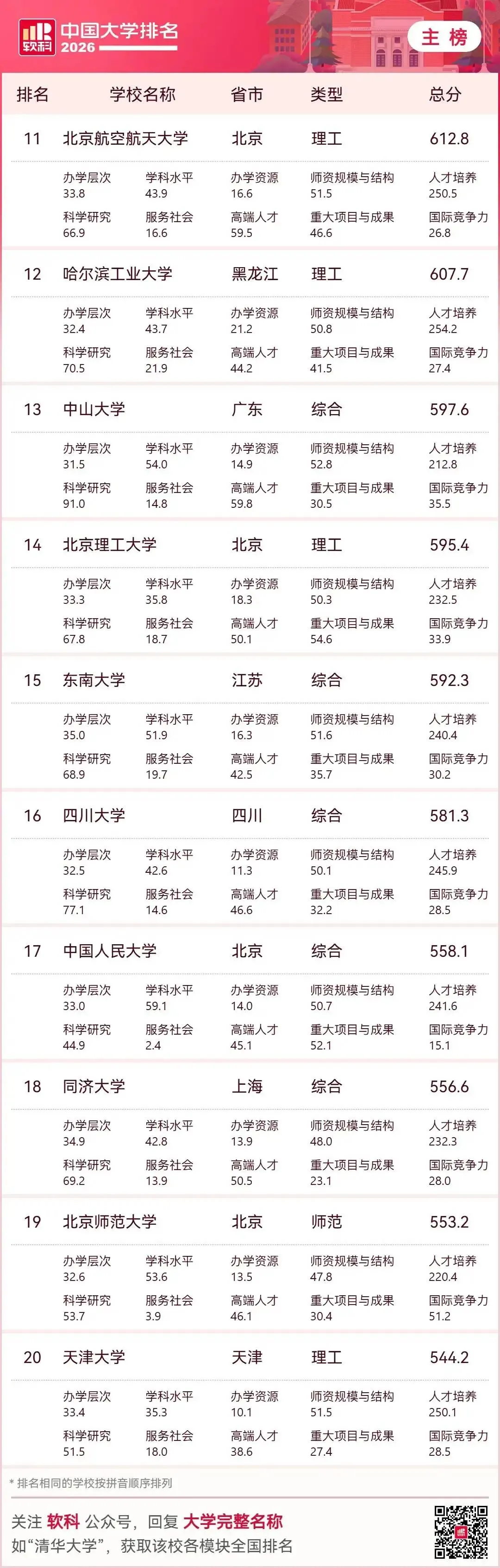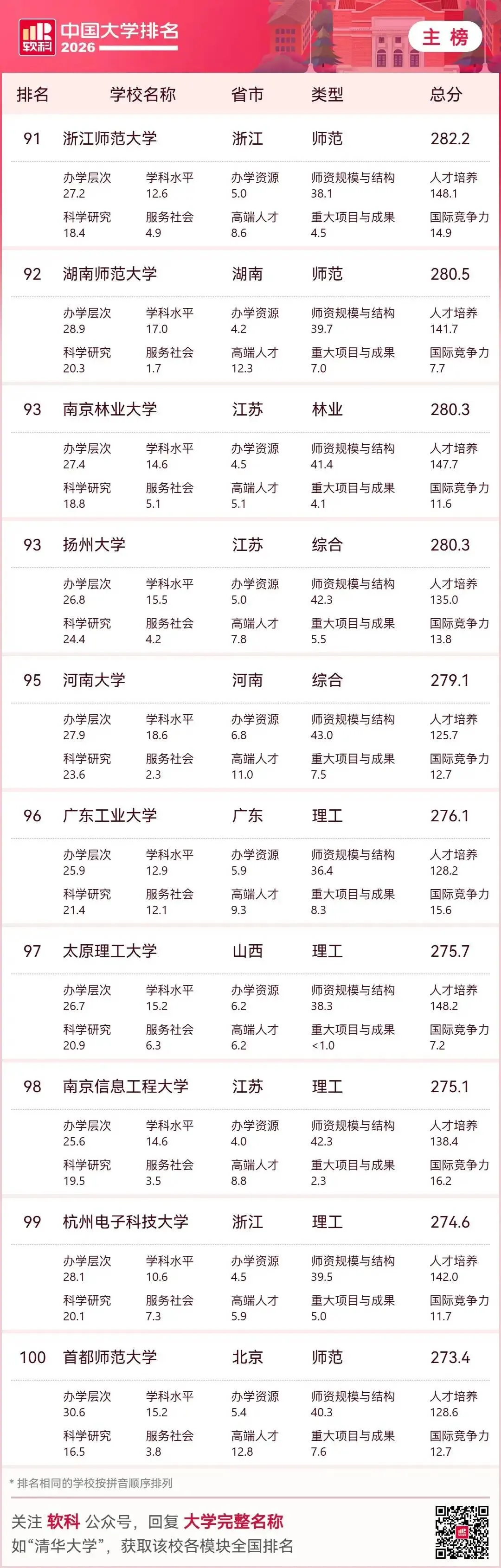 结合2026年最新大学排名数据,河北高等教育呈现“量大质弱、顶尖缺位、区域失衡”的特点,并与人才流失形成恶性循环。下面从现状、差距、流失、对策四方面系统分析。一、2026年河北高校上榜现状(核心事实)上榜数量:全省37所本科上榜(全国中游)顶尖断层:无985、无本土211,唯一“双一流”:河北工业大学,主校区在天津。省内龙头:燕山大学(全国111)、河北大学(116),前200强仅6所,无一所进全国百强梯队断层:第1—10名:111~273名;第20名:397名;第30名:523名区域集中:石家庄、保定占全省近半数高校与资源二、河北高等教育的核心差距1. 顶尖资源与京津断崖式落差北京:26所“双一流”;天津:6所;河北:1所(且在天津)。生均经费:河北约1.8万元;北京5.6万、天津3.9万。学科水平:无A类学科,仅燕山大学机械为A-2. 结构失衡:传统强、新兴弱优势集中:机械、冶金、土木、农业、医学短板明显:人工智能、芯片、生物医药、新能源、金融等新兴学科薄弱专业重复:汉语言、工商管理等供给过剩、就业率低3. 区域与校际差距大石保“一城独大”,冀南、冀东、县域高校普遍偏弱。资源高度集中于燕大、河大、河工大,地方本科师资、博士点严重不足。4. 科研与转化能力弱顶尖课题、国家奖、高被引论文少专利转化率低,高校与产业脱节明显 三、人才流失:从高考到就业的全链条外流1. 高中尖子生“提前流失”全省前1000名:97%+ 出省前1万名:留省内不足200人衡水中学清北生:返省不足10%2. 大学毕业生“刚性外流”清华河北籍毕业生返省:5.8%;北大:7.1%主因:产业低端:钢铁、建材为主,高端岗位少薪酬差距:京津薪资约河北1.5–2倍平台落差:无头部企业、研发中心、科创生态京津虹吸:地理相邻、交通便捷,人才自然北流3. 高校师资流失骨干教师、博士被京津高薪挖走常态化形成:弱校→留不住人→更弱→更留不住四、破局路径:教育+产业+政策协同改革1. 举全省之力:打造1—2所本土“双一流”重点支持燕山大学(材料/机械)、河北大学(文/理)**冲双一流 大幅增加经费、博士点、引才编制、校区用地2. 借势雄安:承接京津优质资源外溢;加快北京交大、地大等雄安校区建设;组建雄安高校协同创新联盟,共享实验室、导师、项目;争取人大、北师大等在雄安建校区/研究院3. 学科专业“换血”:对接新质生产力关停过剩传统专业,新增新能源、AI、生物医药、集成电路、数字经济围绕河北八大主导产业(钢铁升级、装备制造、石化、食品、新材料、医药、电子信息、现代物流)建现代产业学院 4. 产教深度融合:让学生“毕业留冀”校企订单班、学徒制、厂中校 建高价值专利转化平台,鼓励教师带技术创业 对留冀毕业生给予落户、住房补贴、创业贷款(最高30万)5. 区域均衡:做强地级市高校支持华北理工、河北医科、石铁道、河北科大等特色强校在地级市建产业学院、县域学院,服务本地制造业 6. 人才“引育留用”系统工程高薪引育:学科带头人、博士团队待遇对标:缩小与京津薪酬差距环境留人:住房、子女教育、医疗配套平台留人:建重点实验室、新型研发机构五、总结河北高教困境是历史欠账、地理虹吸、产业结构、投入结构共同造成的。短期难彻底逆转,但雄安机遇+集中资源建双一流+产业升级+产教融合,可逐步打破“高教弱→人才流→产业弱→高教更弱”的循环。