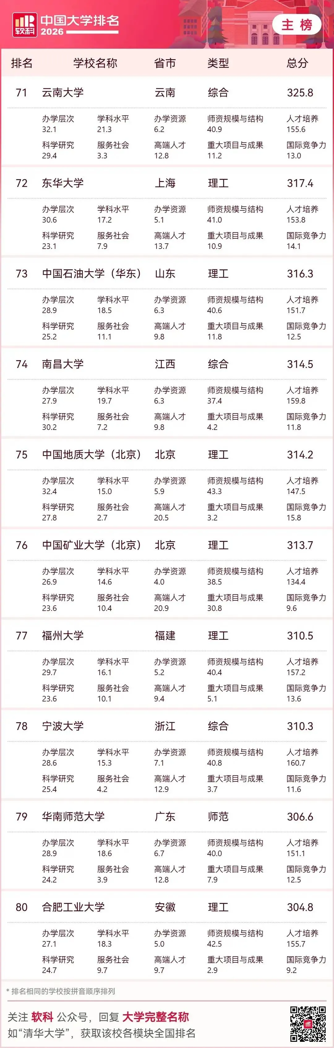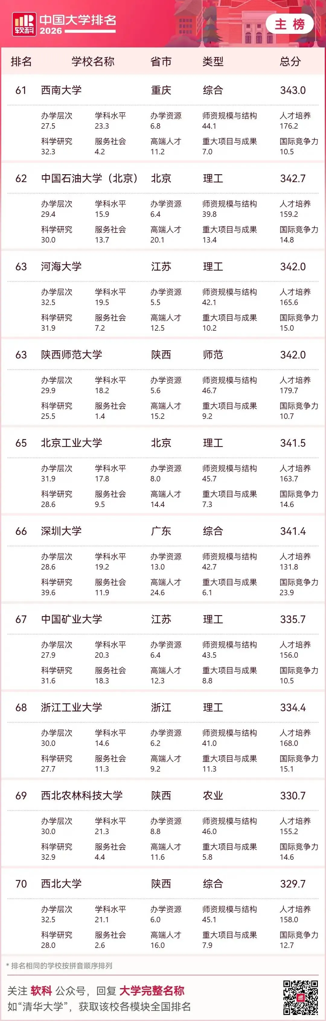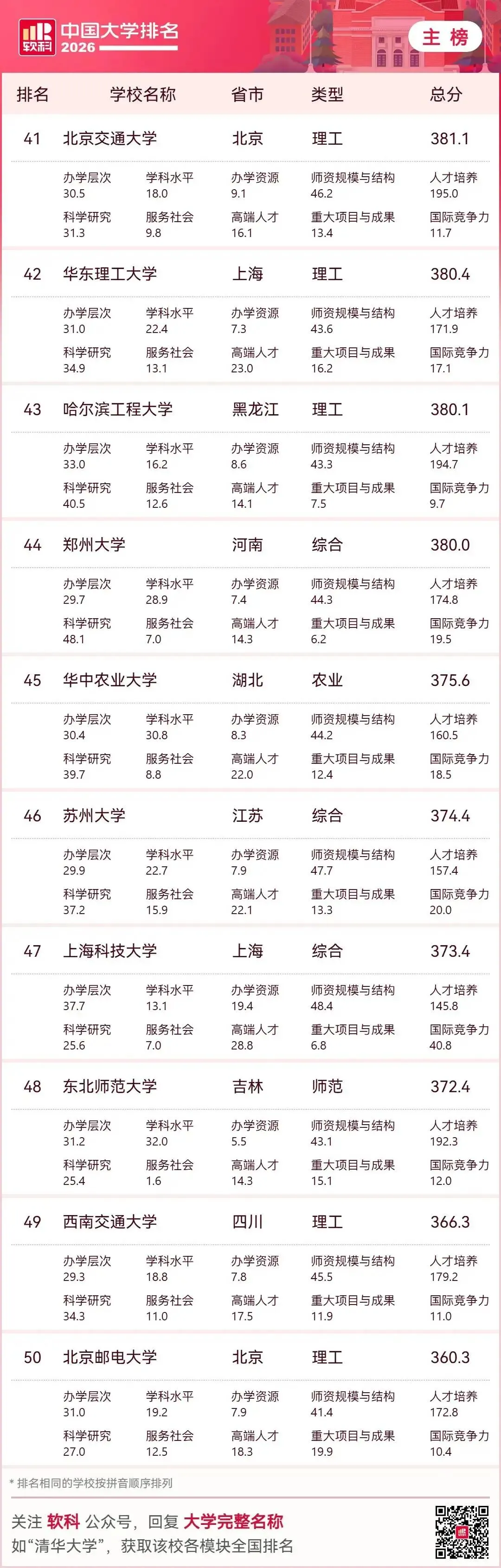 结合2026年最新大学排名数据,河北高等教育呈现“量大质弱、顶尖缺位、区域失衡”的特点,并与人才流失形成恶性循环。下面从现状、差距、流失、对策四方面系统分析。一、2026年河北高校上榜现状(核心事实)上榜数量:全省37所本科上榜(全国中游)顶尖断层:无985、无本土211,唯一“双一流”:河北工业大学,主校区在天津。省内龙头:燕山大学(全国111)、河北大学(116),前200强仅6所,无一所进全国百强梯队断层:第1—10名:111~273名;第20名:397名;第30名:523名区域集中:石家庄、保定占全省近半数高校与资源二、河北高等教育的核心差距1. 顶尖资源与京津断崖式落差北京:26所“双一流”;天津:6所;河北:1所(且在天津)。生均经费:河北约1.8万元;北京5.6万、天津3.9万。学科水平:无A类学科,仅燕山大学机械为A-2. 结构失衡:传统强、新兴弱优势集中:机械、冶金、土木、农业、医学短板明显:人工智能、芯片、生物医药、新能源、金融等新兴学科薄弱专业重复:汉语言、工商管理等供给过剩、就业率低3. 区域与校际差距大石保“一城独大”,冀南、冀东、县域高校普遍偏弱。资源高度集中于燕大、河大、河工大,地方本科师资、博士点严重不足。4. 科研与转化能力弱顶尖课题、国家奖、高被引论文少专利转化率低,高校与产业脱节明显 三、人才流失:从高考到就业的全链条外流1. 高中尖子生“提前流失”全省前1000名:97%+ 出省前1万名:留省内不足200人衡水中学清北生:返省不足10%2. 大学毕业生“刚性外流”清华河北籍毕业生返省:5.8%;北大:7.1%主因:产业低端:钢铁、建材为主,高端岗位少薪酬差距:京津薪资约河北1.5–2倍平台落差:无头部企业、研发中心、科创生态京津虹吸:地理相邻、交通便捷,人才自然北流3. 高校师资流失骨干教师、博士被京津高薪挖走常态化形成:弱校→留不住人→更弱→更留不住四、破局路径:教育+产业+政策协同改革1. 举全省之力:打造1—2所本土“双一流”重点支持燕山大学(材料/机械)、河北大学(文/理)**冲双一流 大幅增加经费、博士点、引才编制、校区用地2. 借势雄安:承接京津优质资源外溢;加快北京交大、地大等雄安校区建设;组建雄安高校协同创新联盟,共享实验室、导师、项目;争取人大、北师大等在雄安建校区/研究院3. 学科专业“换血”:对接新质生产力关停过剩传统专业,新增新能源、AI、生物医药、集成电路、数字经济围绕河北八大主导产业(钢铁升级、装备制造、石化、食品、新材料、医药、电子信息、现代物流)建现代产业学院 4. 产教深度融合:让学生“毕业留冀”校企订单班、学徒制、厂中校 建高价值专利转化平台,鼓励教师带技术创业 对留冀毕业生给予落户、住房补贴、创业贷款(最高30万)5. 区域均衡:做强地级市高校支持华北理工、河北医科、石铁道、河北科大等特色强校在地级市建产业学院、县域学院,服务本地制造业 6. 人才“引育留用”系统工程高薪引育:学科带头人、博士团队待遇对标:缩小与京津薪酬差距环境留人:住房、子女教育、医疗配套平台留人:建重点实验室、新型研发机构五、总结河北高教困境是历史欠账、地理虹吸、产业结构、投入结构共同造成的。短期难彻底逆转,但雄安机遇+集中资源建双一流+产业升级+产教融合,可逐步打破“高教弱→人才流→产业弱→高教更弱”的循环。