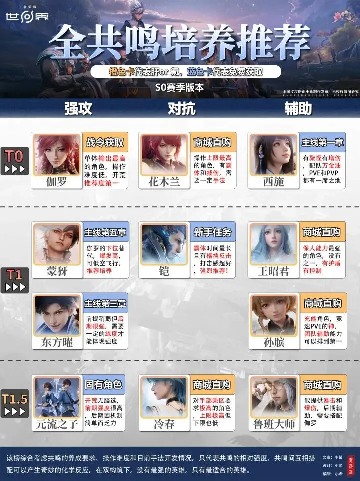 该榜综合考虑共鸣的养成要求、操作难度和目前手法开发情况
