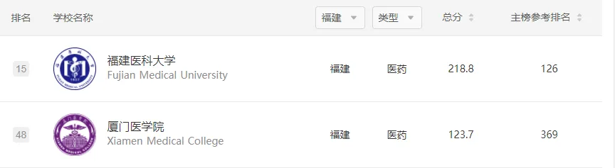 在行业特色高校排名中,福建有2所高校上榜医药类大学排名,福建医科大学位列第15名,厦门医学院位列第48名;在中医药大学排名中,福建中医药大学位列第10名;在政法类大学排名中,福建警察学院位列第24名;在财经类大学排名中,福建江夏学院位列第42名。