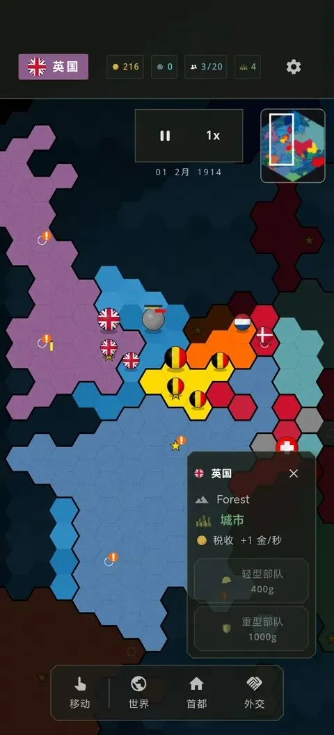 指挥你的国家,在争夺欧洲霸权的实时战争中奋战到底。在广阔的六边形地图上调动军队,占领敌方领土,夺取关键城市,并在战术战斗中消灭对手。