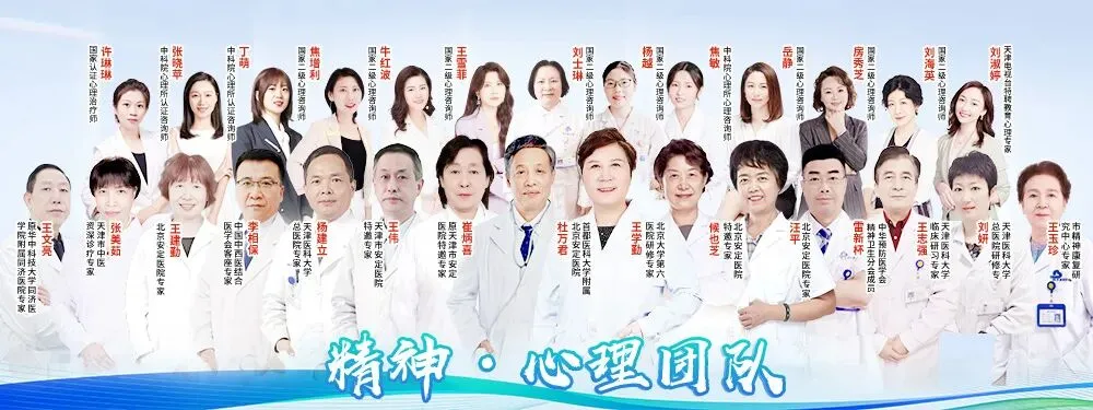 天津圣安医院汇聚了一批临床经验丰富的精神科专家,如王学勤主任、雷新杯主任、李相保主任、王玉珍主任、王雪菲国家二级心理咨询师、杨越国家二级心理咨询师等。具有解决精神科急、重疑难病例的诊疗能力及心理卫生综合服务能力。多学科联合治疗抑郁症、精神分裂症、双相情感障碍、躁狂症、癔病、疑病症、神经衰弱、强迫症、焦虑症、恐惧症、顽固性失眠、睡眠障碍等精神心理疾病方面有着成熟而丰富的临床经验。