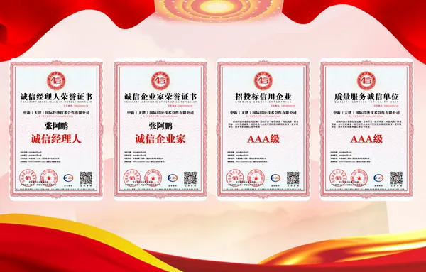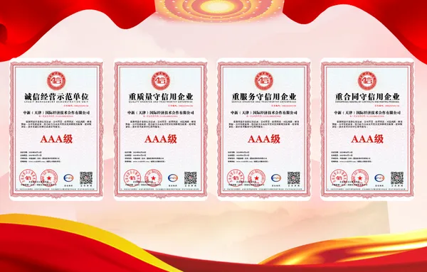 近日,中新国际经过权威第三方评级机构及相关部门的严格审核与综合评定,成功斩获多项重量级信用类荣誉,包括企业信用AAA级证书、企业资信AAA级证书、招投标信用AAA级证书、重合同守信用企业证书、诚信经营示范单位荣誉证书等,全方位彰显了公司优良的信用状况、强劲的经营实力与高度的社会责任感,成为企业高质量发展路上的重要信用背书。