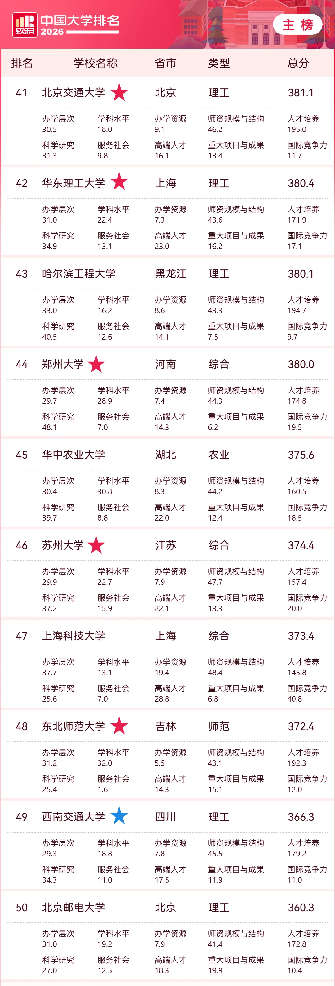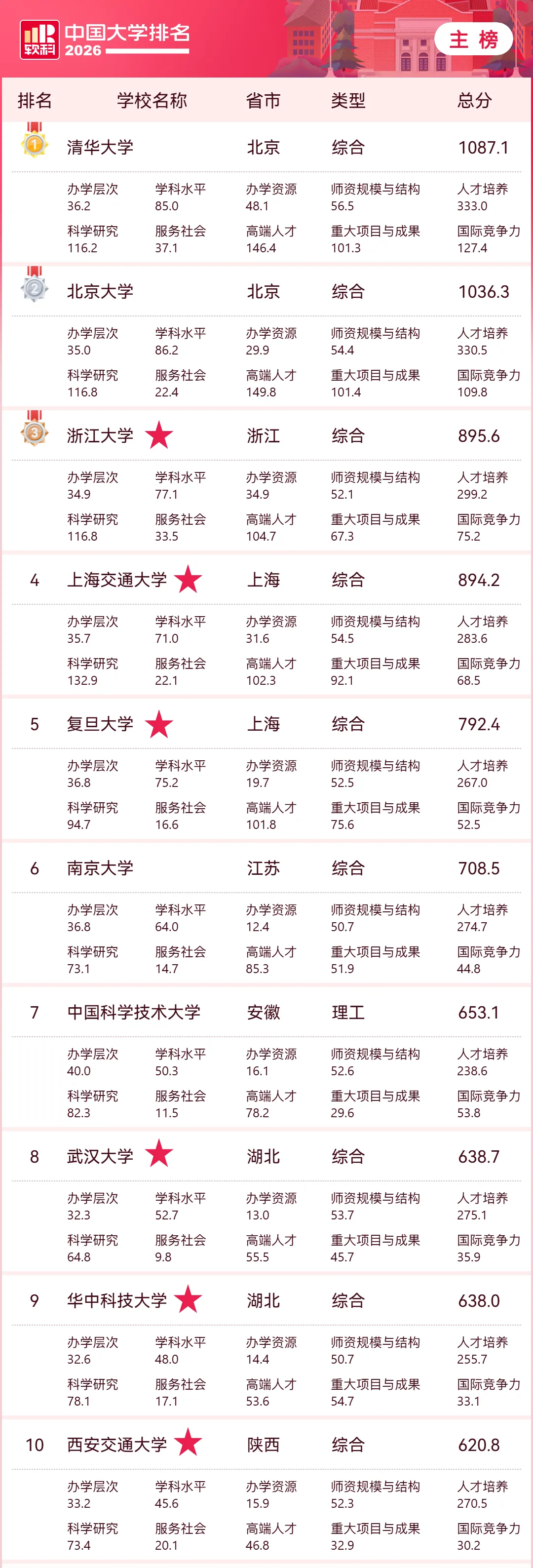 近年来,越来越多的高校开始加入到体育单招的招生阵营中,其中不乏上海交通大学、复旦大学、武汉大学这样的国内顶尖院校。在昨日软科发布的2026年中国百强高校主榜中,有50所高校为今年的体育单招院校。