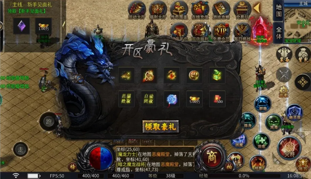 在保留战法道经典三职业的基础上,融入了挂机养成、跨服团战、自由交易等当下流行玩法。副本节奏紧凑,支持自动战斗与手动操作两种模式,满足不同玩家需求;游戏内神器爆率可观,登录就能领取稀有坐骑与高级转生材料;特色跨服战场与公会沙城争霸,让团队配合与实时竞技体验拉满。