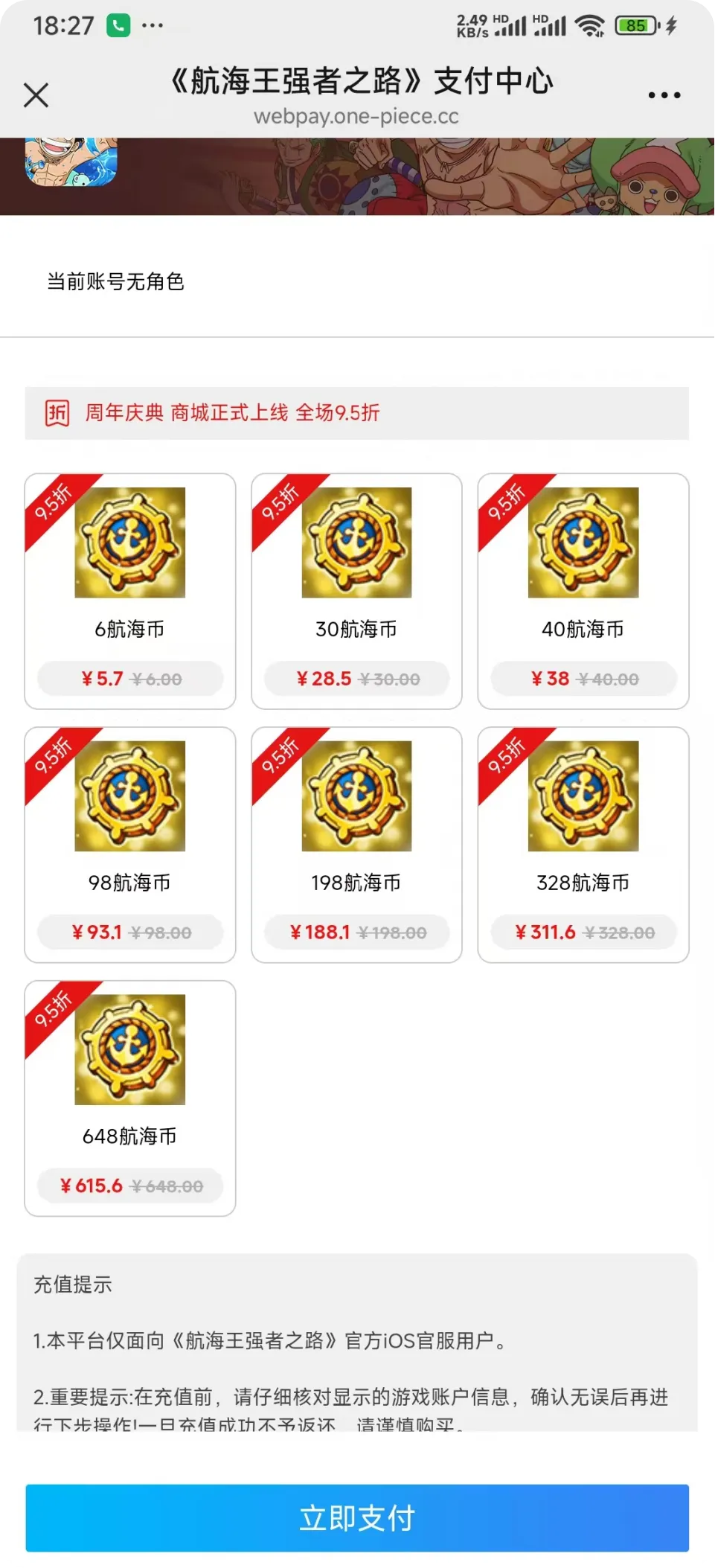 IOS苹果端口,通过线上商城购买航海币的形式,9.5折