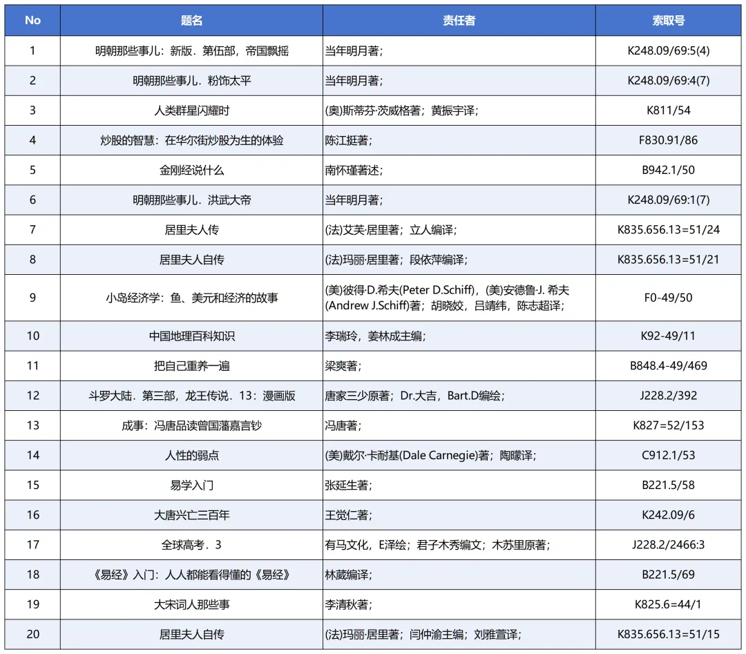 三月图书借阅排行榜新鲜揭晓啦!