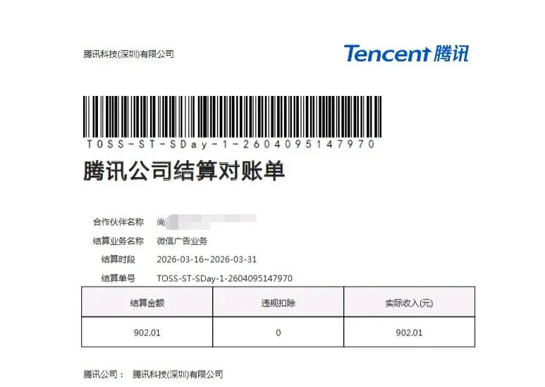 又收到腾讯大厂的工资条了:半月一结的流量主收益。