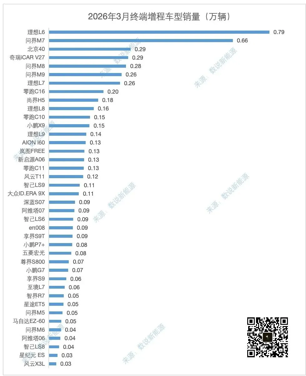 根据终端销量数据,2026年3月中国乘用车终端销量 145.4万辆,环比上涨29.4%;2026年2月新能源乘用车总销量80.4万辆,环比上涨86.5%。具体能源类型来看:纯电车型销量56.4万辆,环比上涨 115.3%;插混车型销量 17.8万辆,环比上涨47.1%;增程车型销量6.3万辆,环比上涨33.2%。
