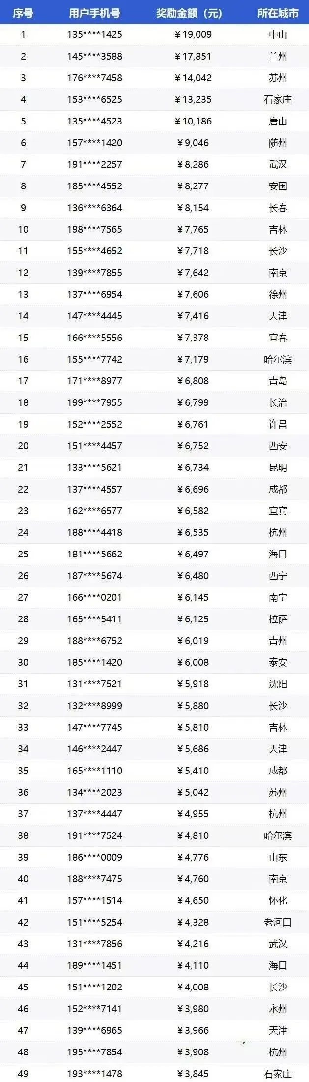 三月份全国随手拍奖励排名