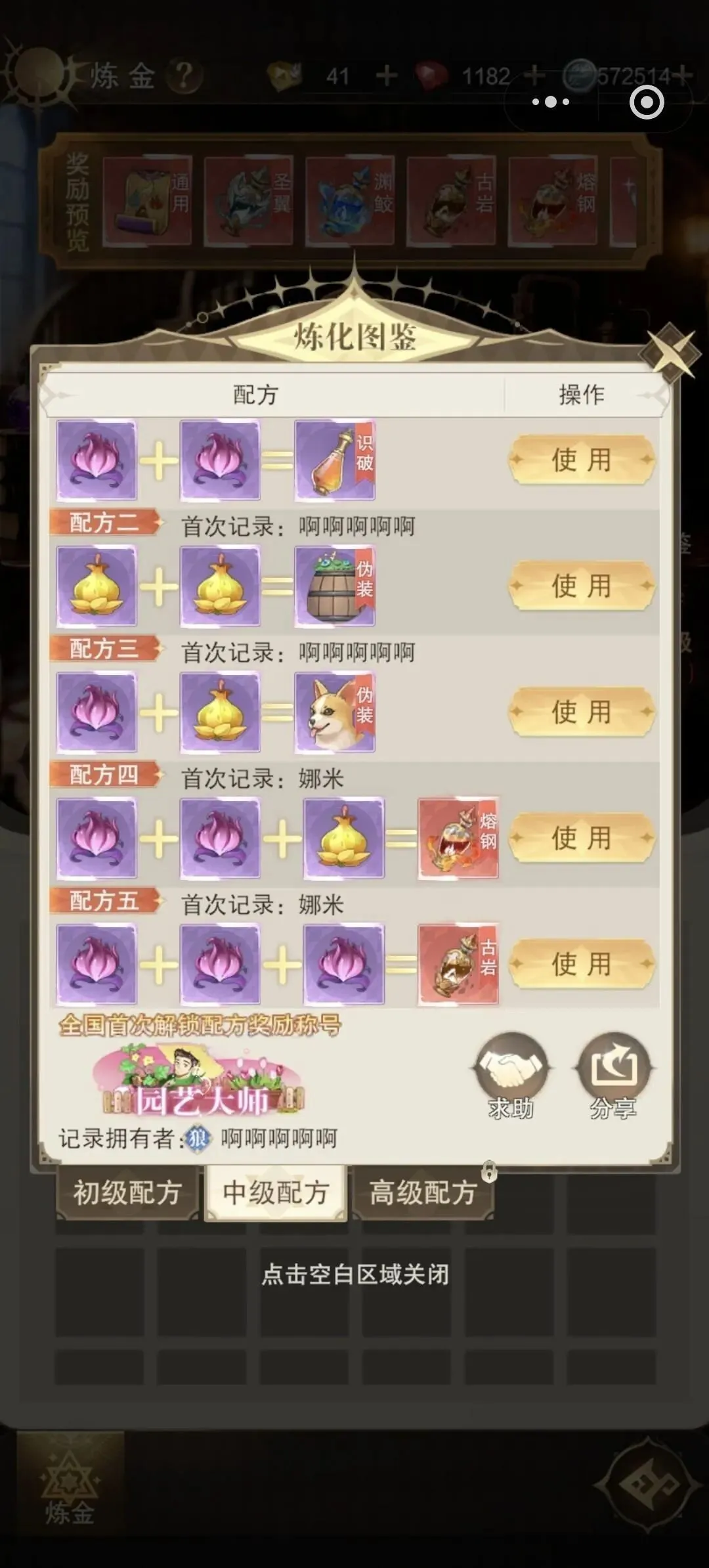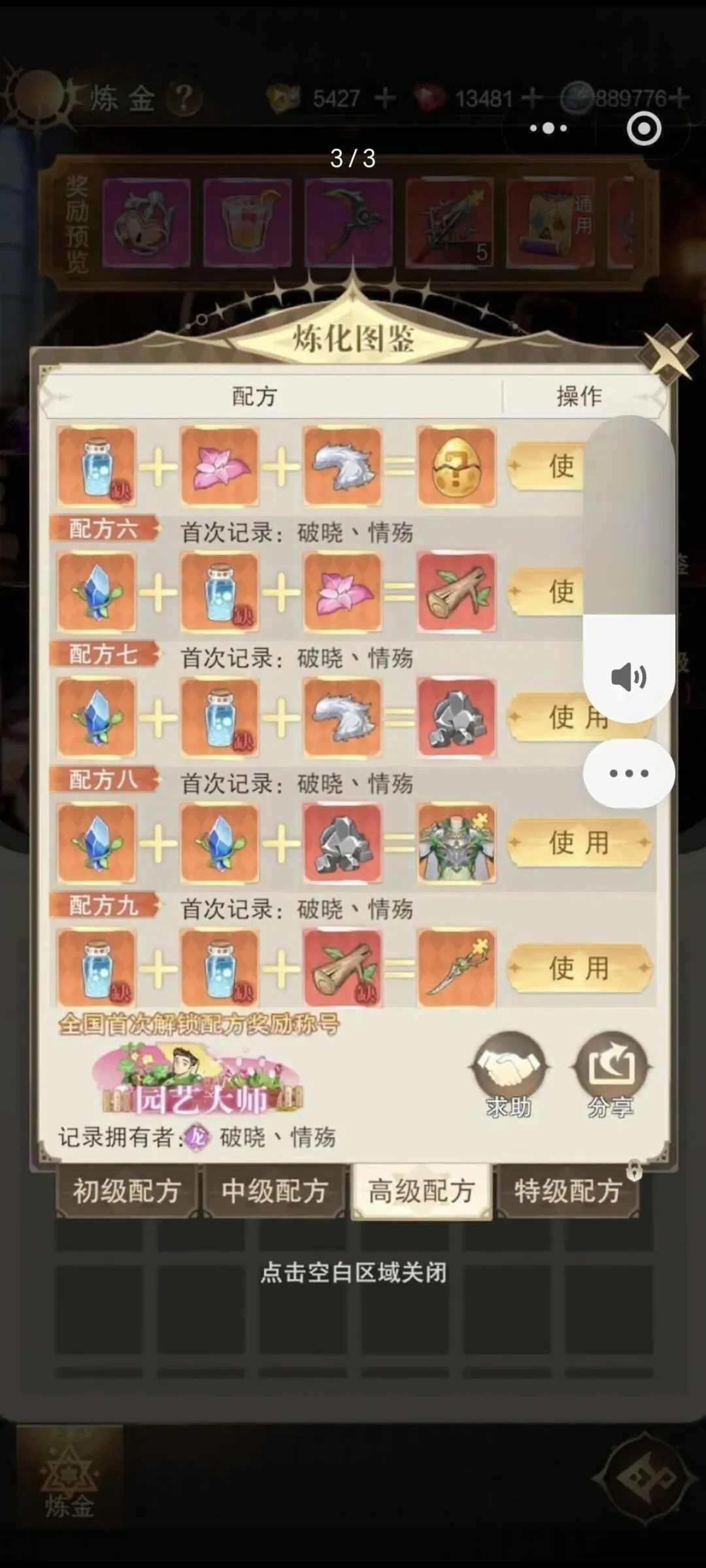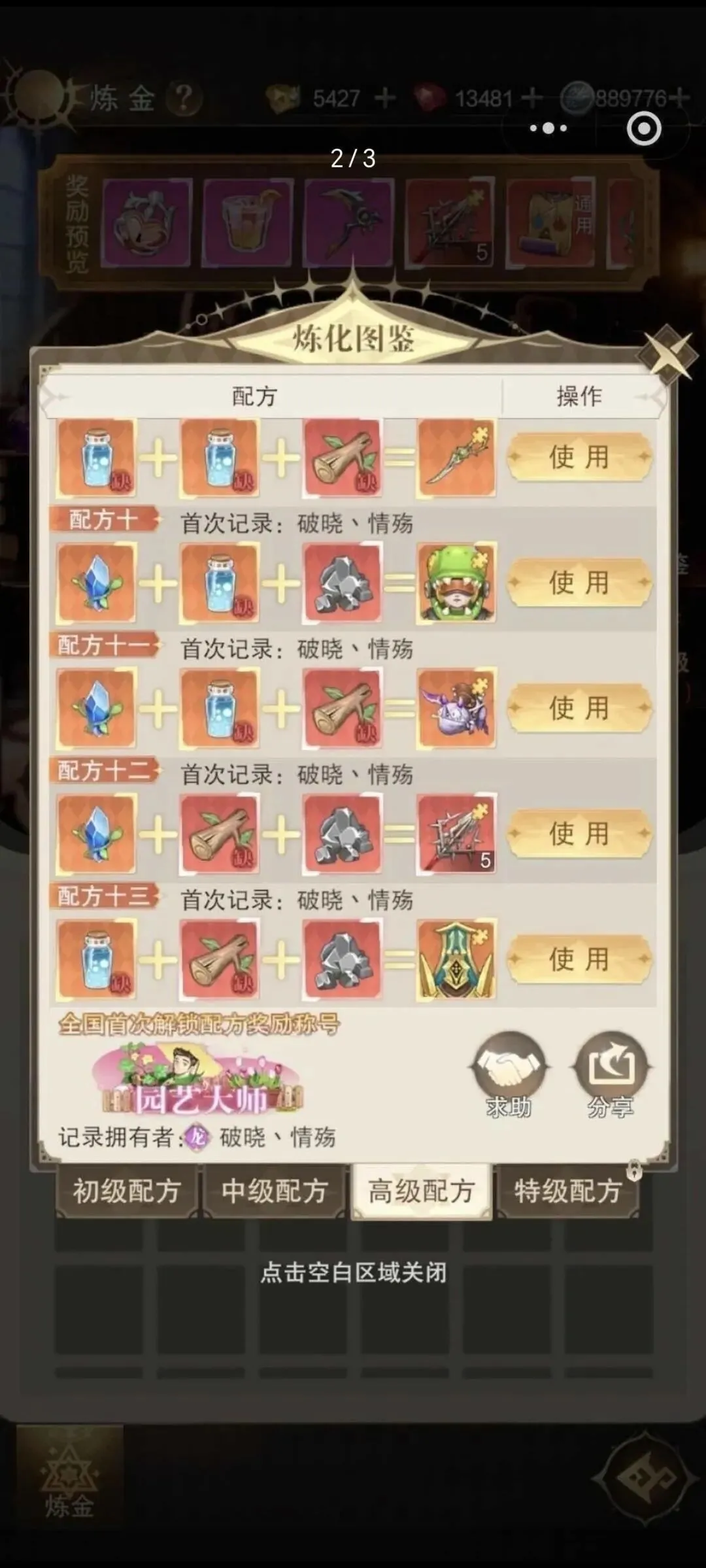 三、高级炼金配方(高阶养成·终极道具,适配后期玩家)
