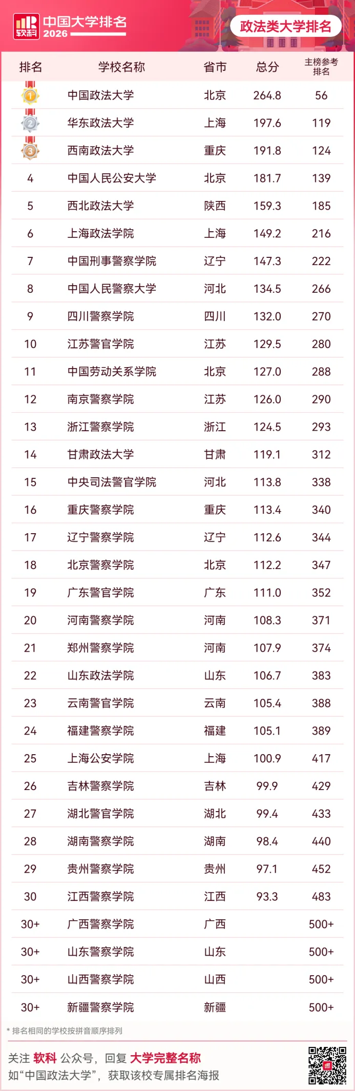 中国政法大学毫无悬念地蝉联政法类榜首。作为中国法学教育的最高学府,“法大”在法学理论、诉讼法学、民商法学等领域的学术地位无可撼动。