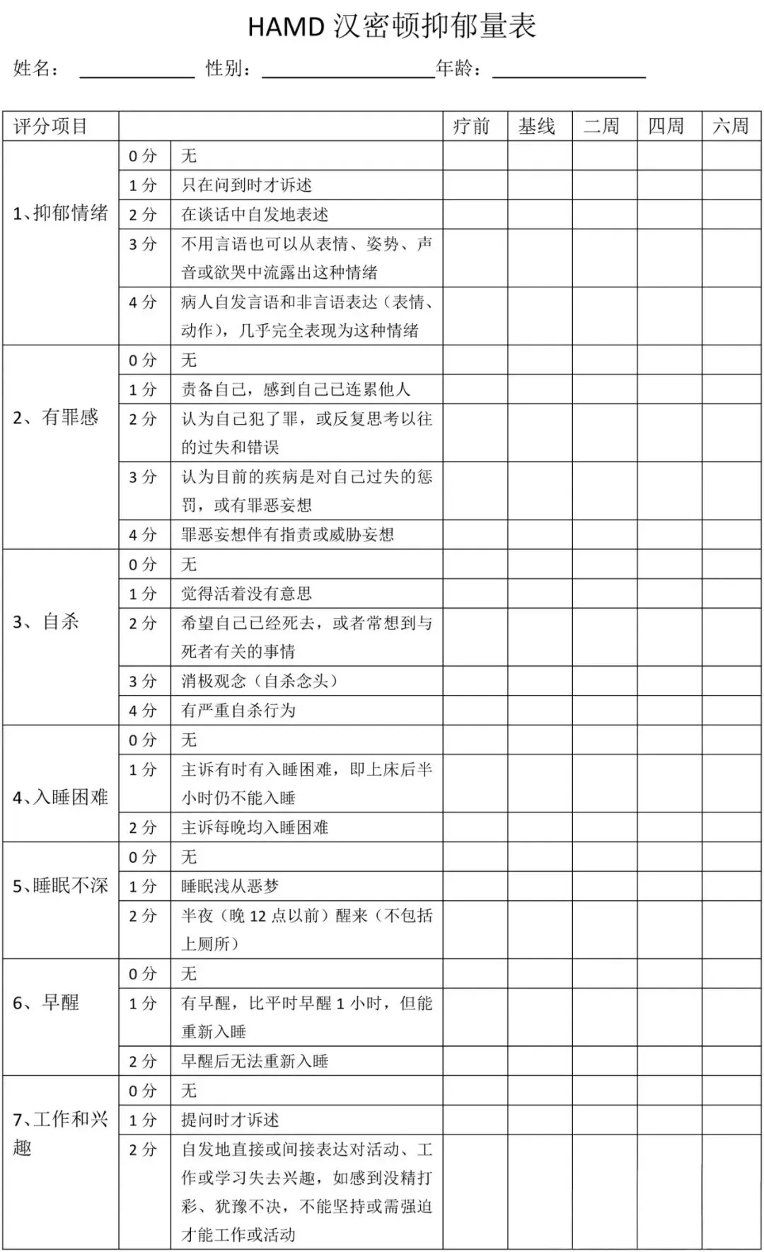 汉密尔顿抑郁量表(HAMD)是临床诊断抑郁症的核心量表,由医生评定,而非自我测评,主要用于评估抑郁症状的严重程度,为诊断和治疗方案制定提供重要依据。