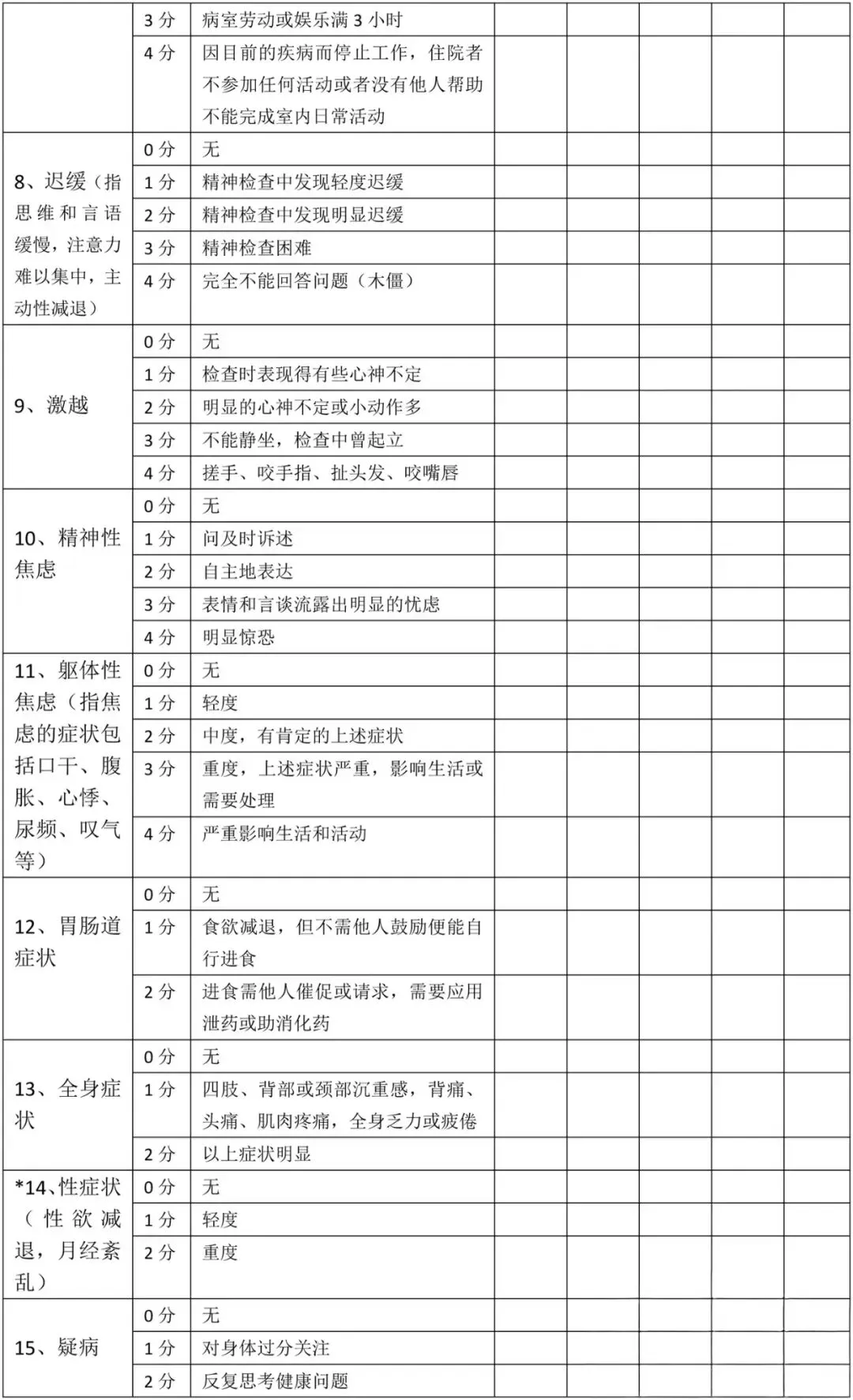 采用0-4分5级评分法(0分=无,1分=轻度,2分=中度,3分=重度,4分=极重度),总分0-52分,得分越高,抑郁症状越严重。