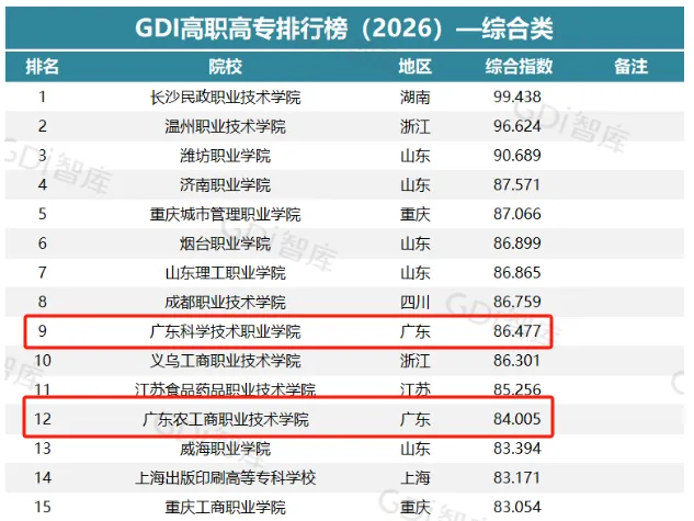 2026年高职院校排名出炉!广东前3名院校是这三所!
