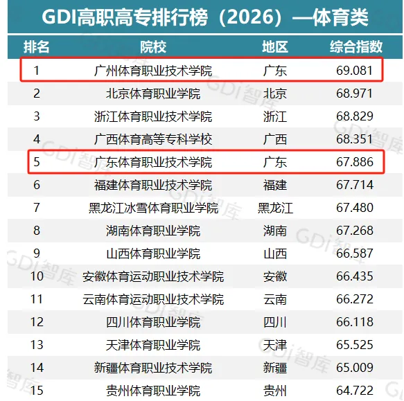 4月15日,广州日报数字化研究院(GDI智库)发布“GDI高职高专排行榜(2026)”,榜单以教育部最新公布的《全国普通高等学校名单》为依据(剔除升本院校及停止办学院校),对全国1501所高职院校(不含香港特别行政区、澳门特别行政区和台湾地区院校)展开科学评价。