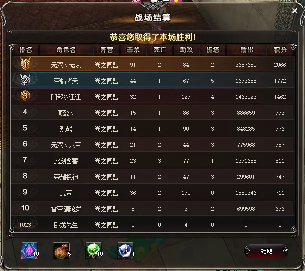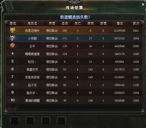 今日周五,活动为战三,分两轮。排名前十数据如下:
