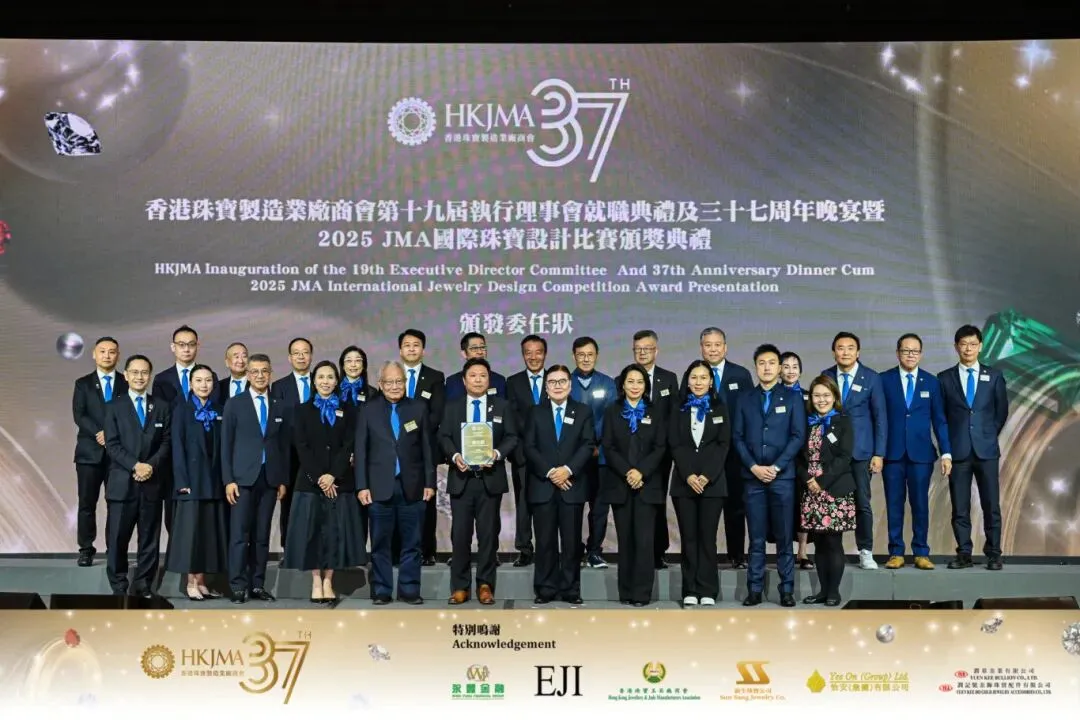 11月28日晚,思懿家品牌联合创始人刘思懿出席了展会第十九届执行理事会就职典礼及三十七周年晚宴暨2025 JMA国际珠宝设计比赛颁奖典礼。该晚宴作为业内标志性盛会,旨在汇聚业界精英,促进交流。夜宴现场群星闪耀,珠宝界大咖齐聚,刘思懿在现场共同见证新一届执行理事领导班子的就职仪式,并欣赏了2025 JMA国际珠宝设计比赛颁奖典礼中多项荣获设计大奖的匠心之作,深刻感受到珠宝创作中凝结的工艺精神与艺术创新。