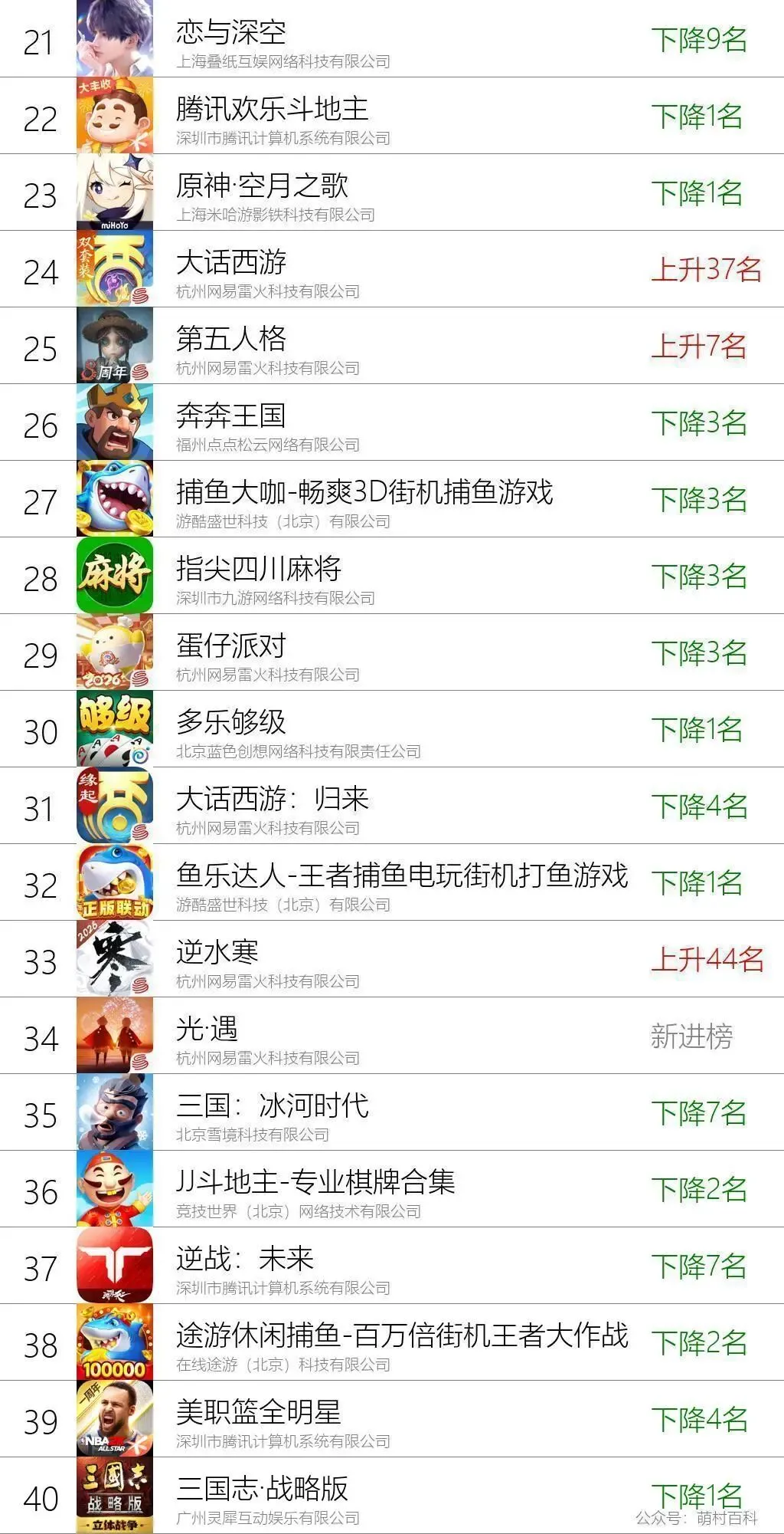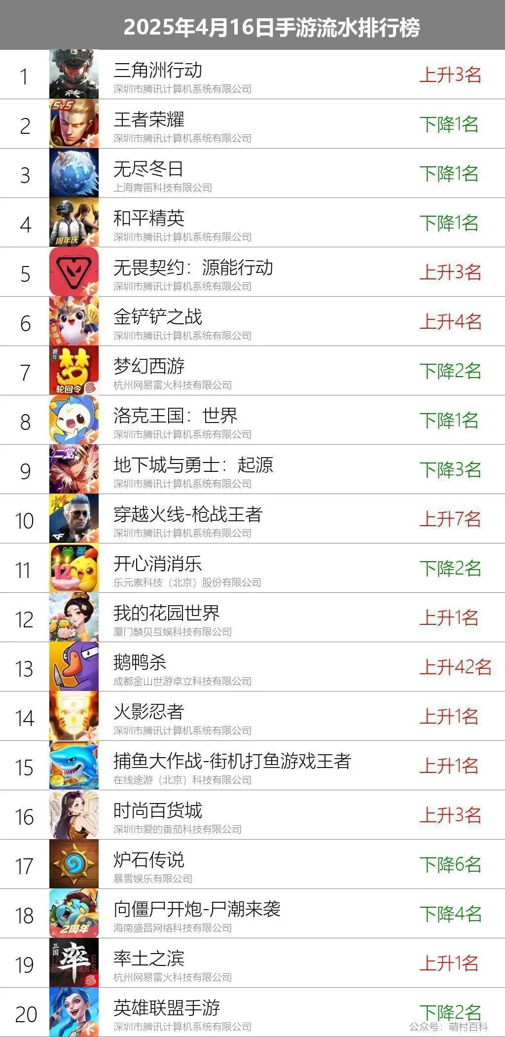 4月16日手游流水排行榜。数据来源于iOS中国区畅销榜数据,数据节点为2026年4月16日22:00。