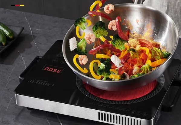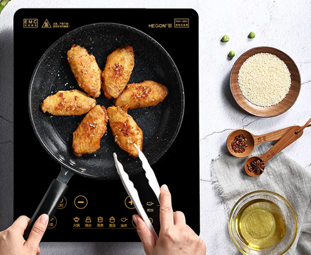 首先,采用大直径的线圈盘与大功率的加热结构设计,可快速实现高温升温,应对中式家常的爆炒烹饪需求时,可在短时间内达到所需的烹饪温度。