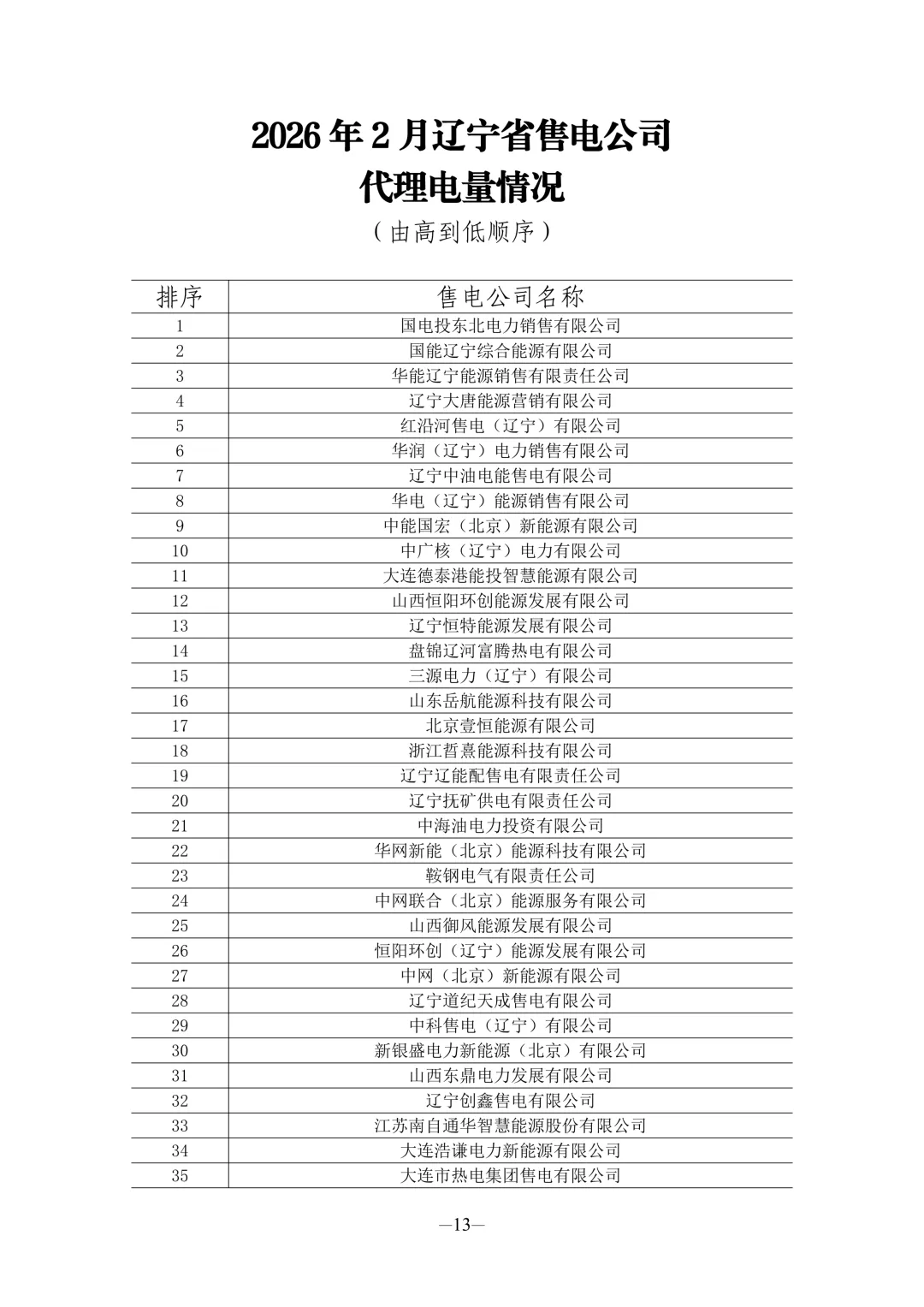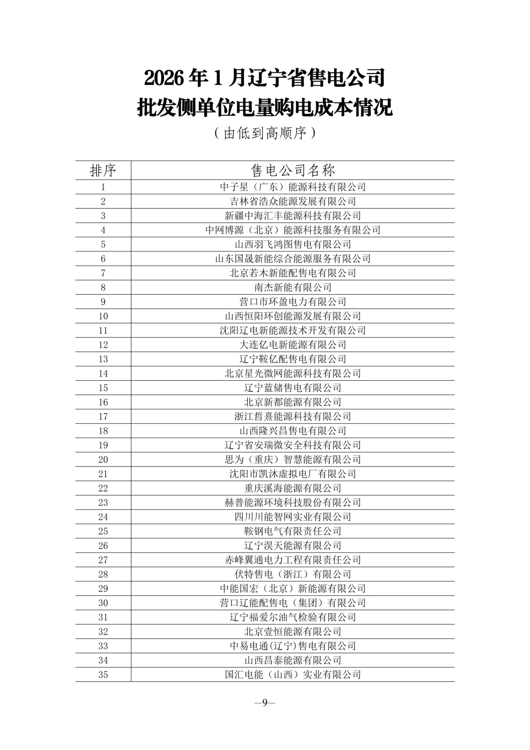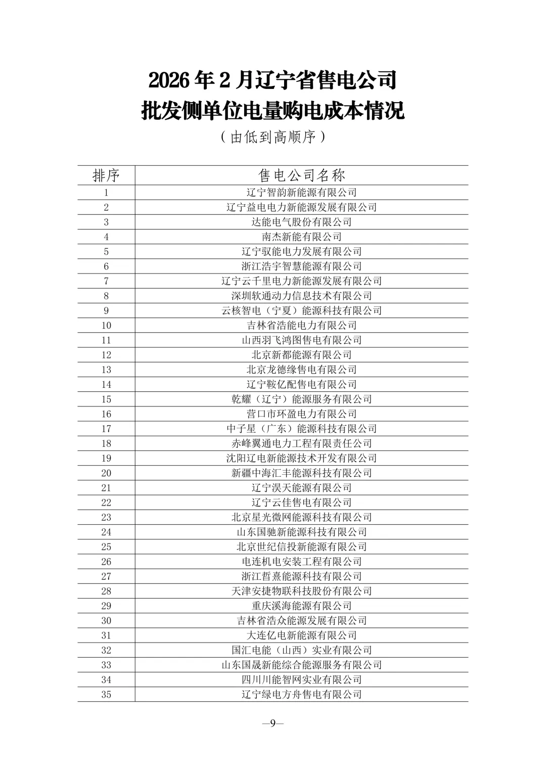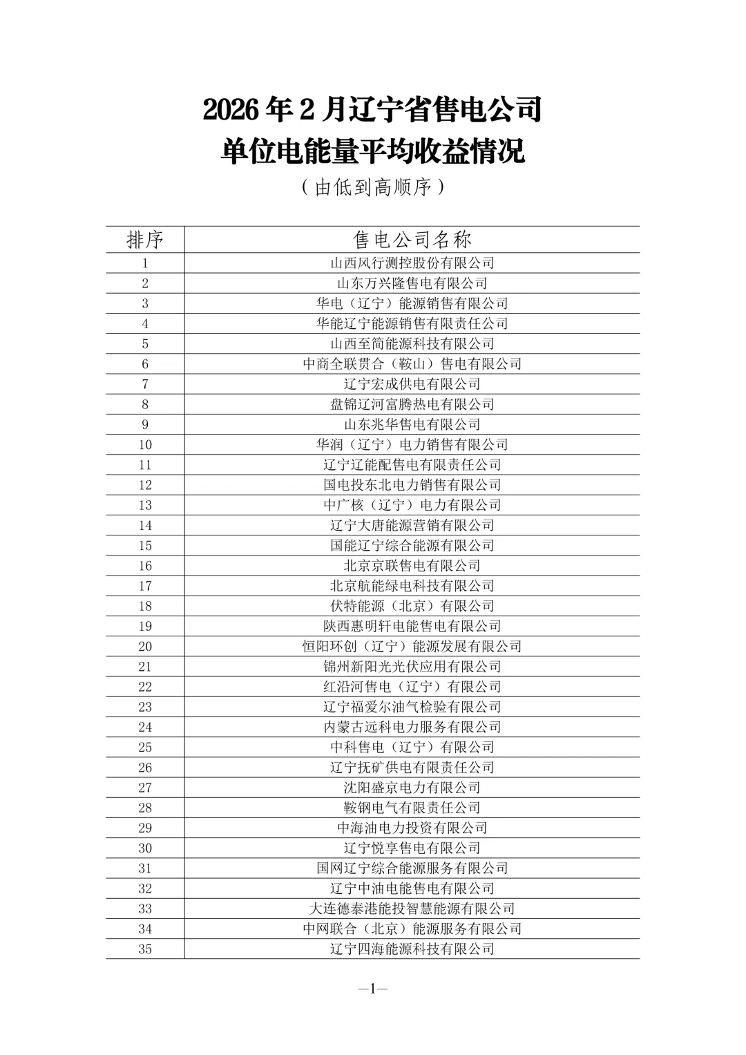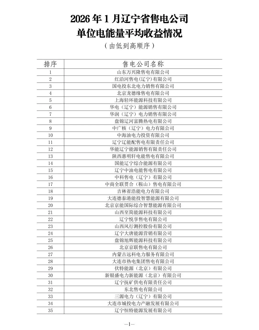 近日【光伏资讯】微信公众号(PV-info)了解到,为全面反映辽宁省售电市场运行态势,近期发布了2026年1—2月全省售电公司核心经营数据,涵盖单位电能量平均收益、零售用户平均电价、批发侧购电成本、代理电量等四项重要指标,清晰呈现各主体市场表现,为行业研判与市场参与提供参考。具体情况如下: