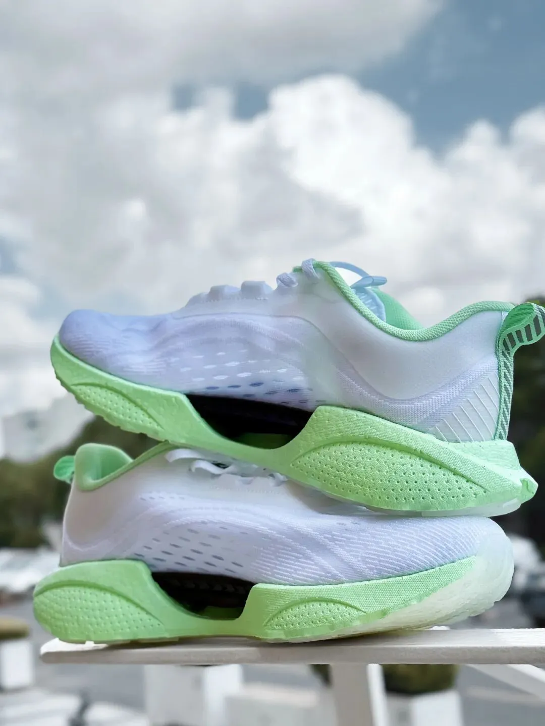 通过精密模具氮气发泡成型,兼具轻量舒适与出色回弹,独特的中底侧墙滚动纹路设计,能减少对鞋子的依赖,增强自身力量,让步伐更流畅省力,同时提供恰到好处的支撑。