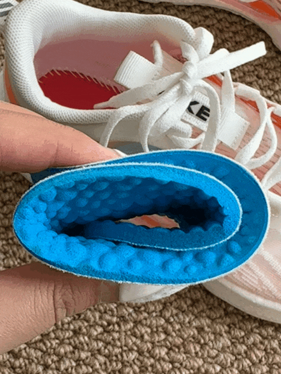3️⃣独家研发的鞋垫,爆米花颗粒缓震设计,边走边按摩