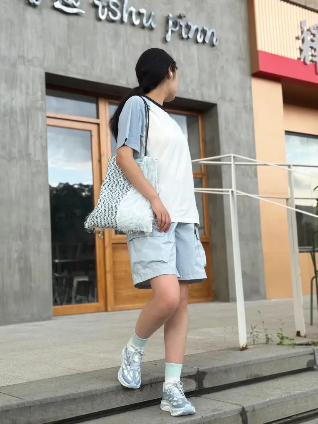 可以搭配休闲时尚的T恤、短裤、牛仔裤,基本上家里的衣服都能搭!
