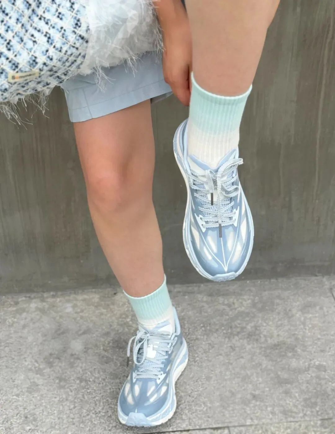 ①鞋面采用进口鱼丝网+TPU超碳材质设计,如同汽车碳纤维一样,超碳TPU使鞋面整体重量直线下降,达到了真正超轻的效果!而且如果脚容易出汗,闷汗,不透气的鞋子基本上不到两天就开始脚臭,这款鞋上脚透气、不闷、不怕脚臭,不仅更透气、轻薄,鞋型硬挺。不管怎么跑跳鞋子都不容易变形,在一众扎眼的厚重跑鞋中脱颖而出,朋友都说这鞋哪买的太帅了!②这双运动鞋38码的只有192g,比一杯酸奶还轻哦!💖 穿上它,像小精灵一样轻盈~