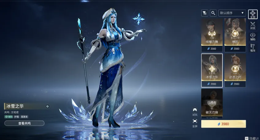 大范围冰冻,能打断BOSS技能。打周本的时候,BOSS要放秒杀技,王昭君一个大冻住,全队安全。