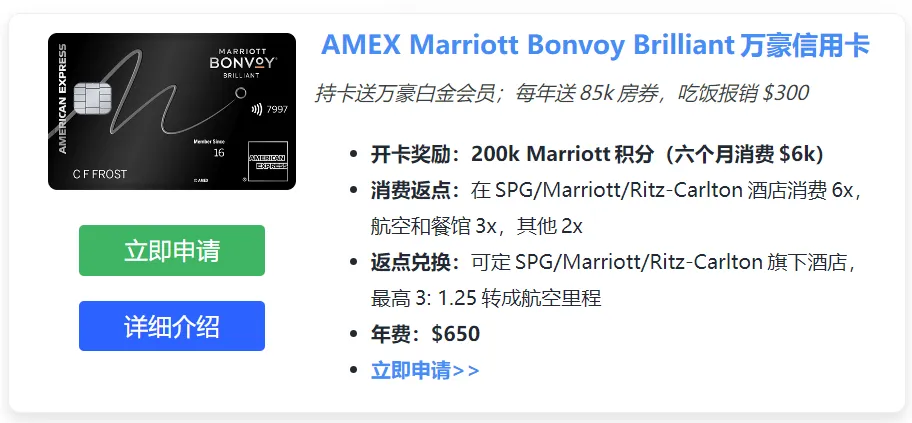 【史高】AMEX Marriott Bonvoy Brilliant (200k)