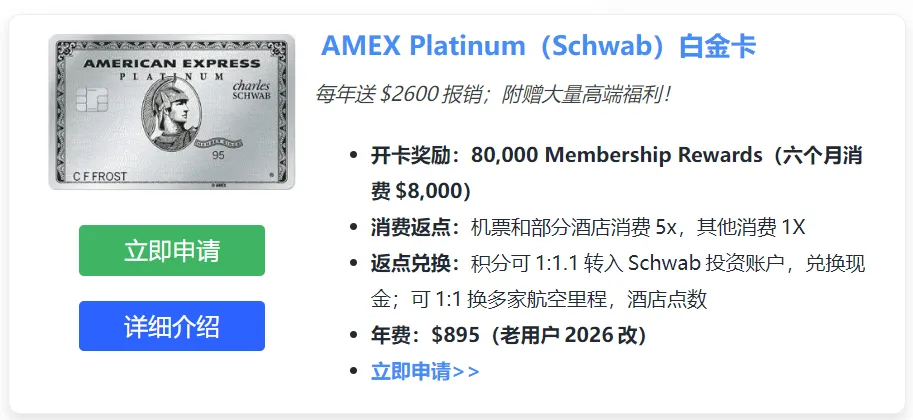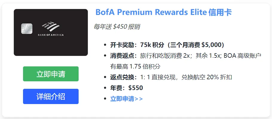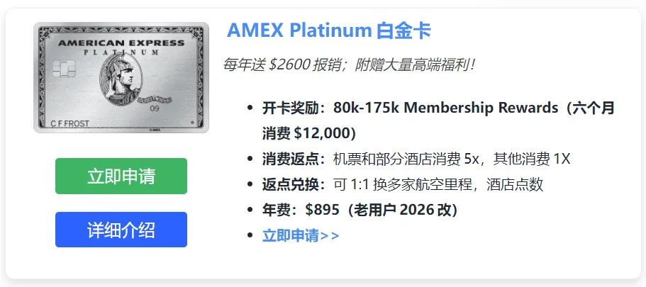 - 开卡奖励扣除年费,价值约 $500;航空报销很容易获取,可以加上 $100