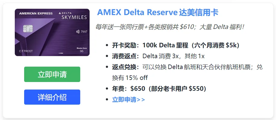 - 如果需要 Delta 高级会籍以及 Delta 自家航空休息室的可以考虑,最好是乘飞机非常多的再考虑。不适合普通人申请
