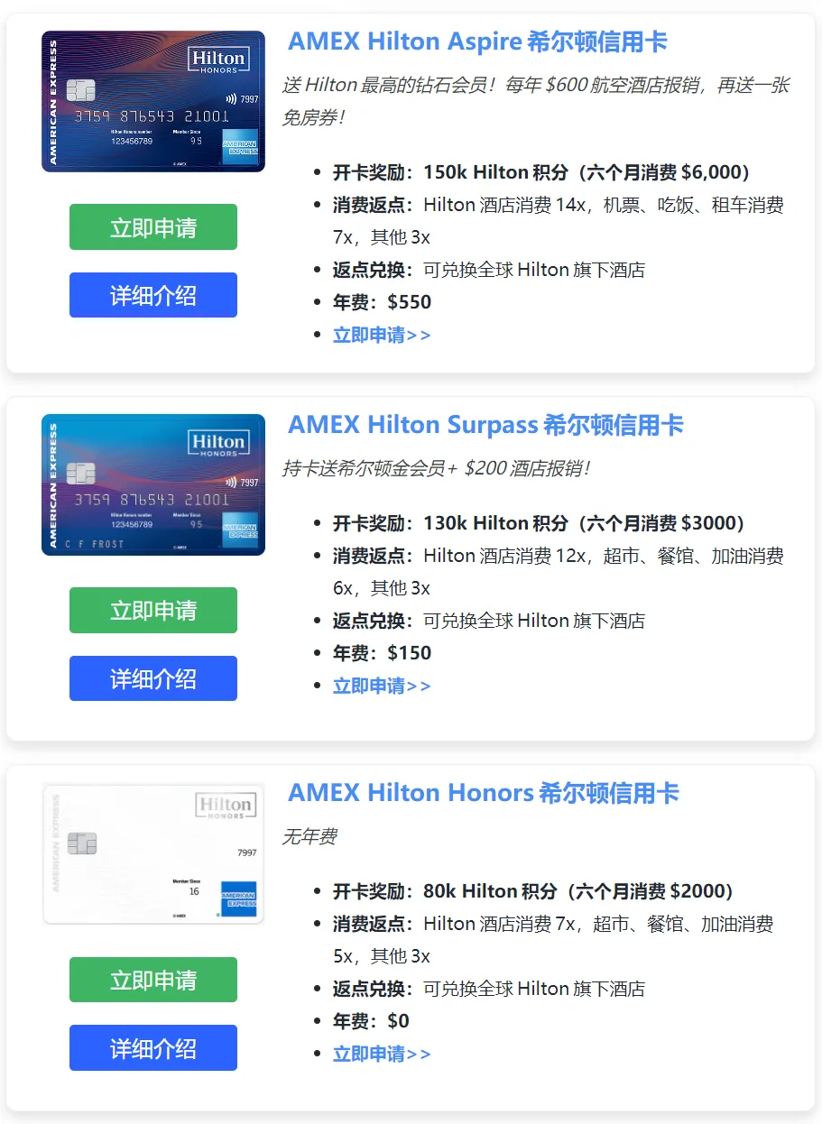 这一波 Hilton 的史高奖励过期了,有点可惜。AMEX 几个卡也都是开盲盒的高奖励,剩下的好 offer 大家别错过啦,特别是 Marriott 酒店卡。具体如下