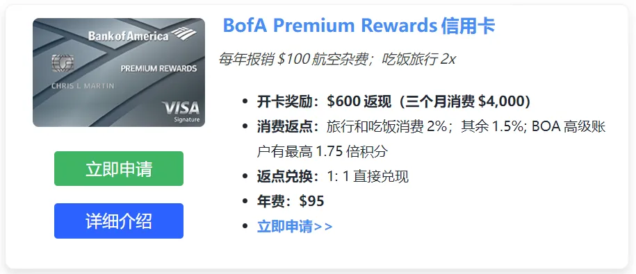- 开卡奖励扣除年费,价值约 $500;旅行报销很容易拿,所以再加上 $300