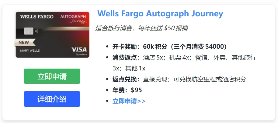 【常规】Wells Fargo Autograph Journey (60k-70k )