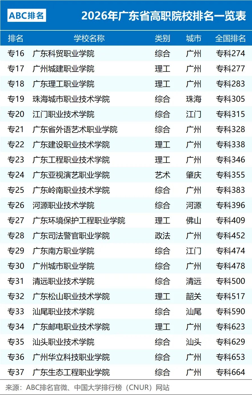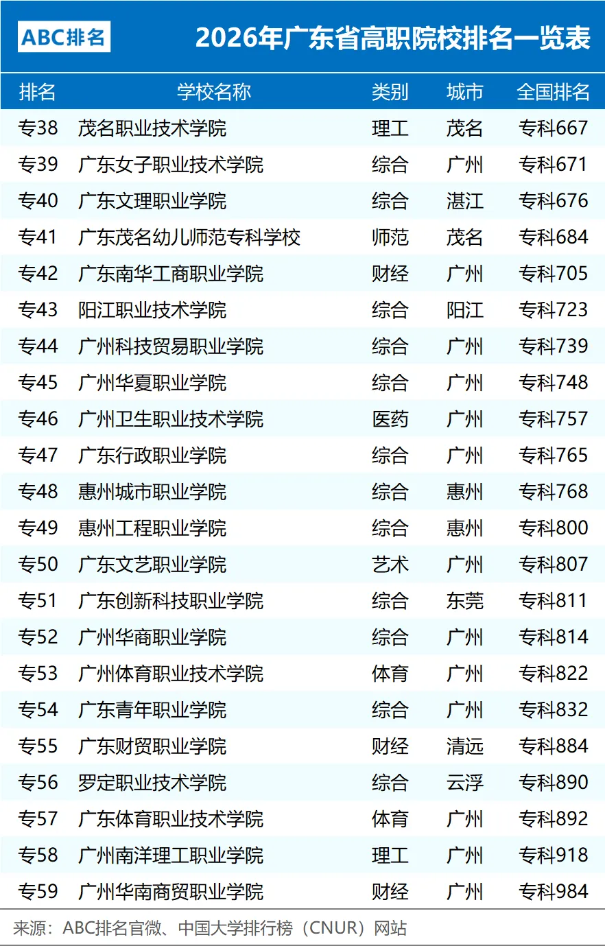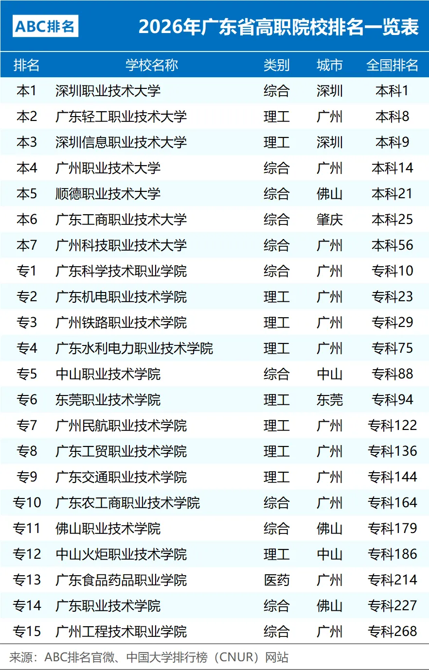 本文梳理了2026年广东省高职院校排名情况(含职业本科)。