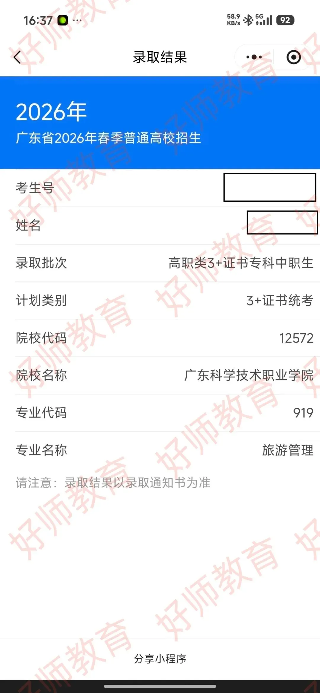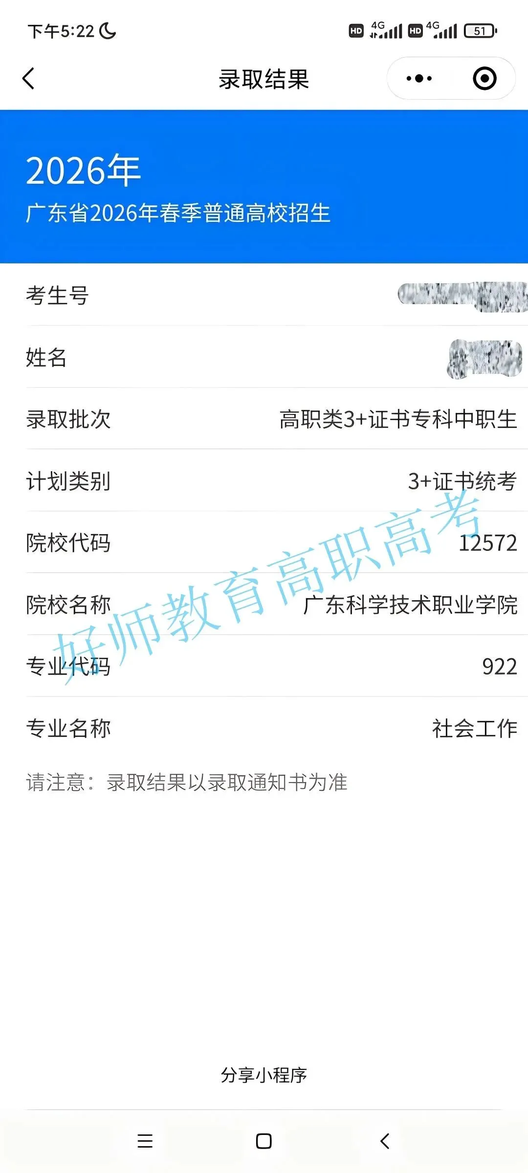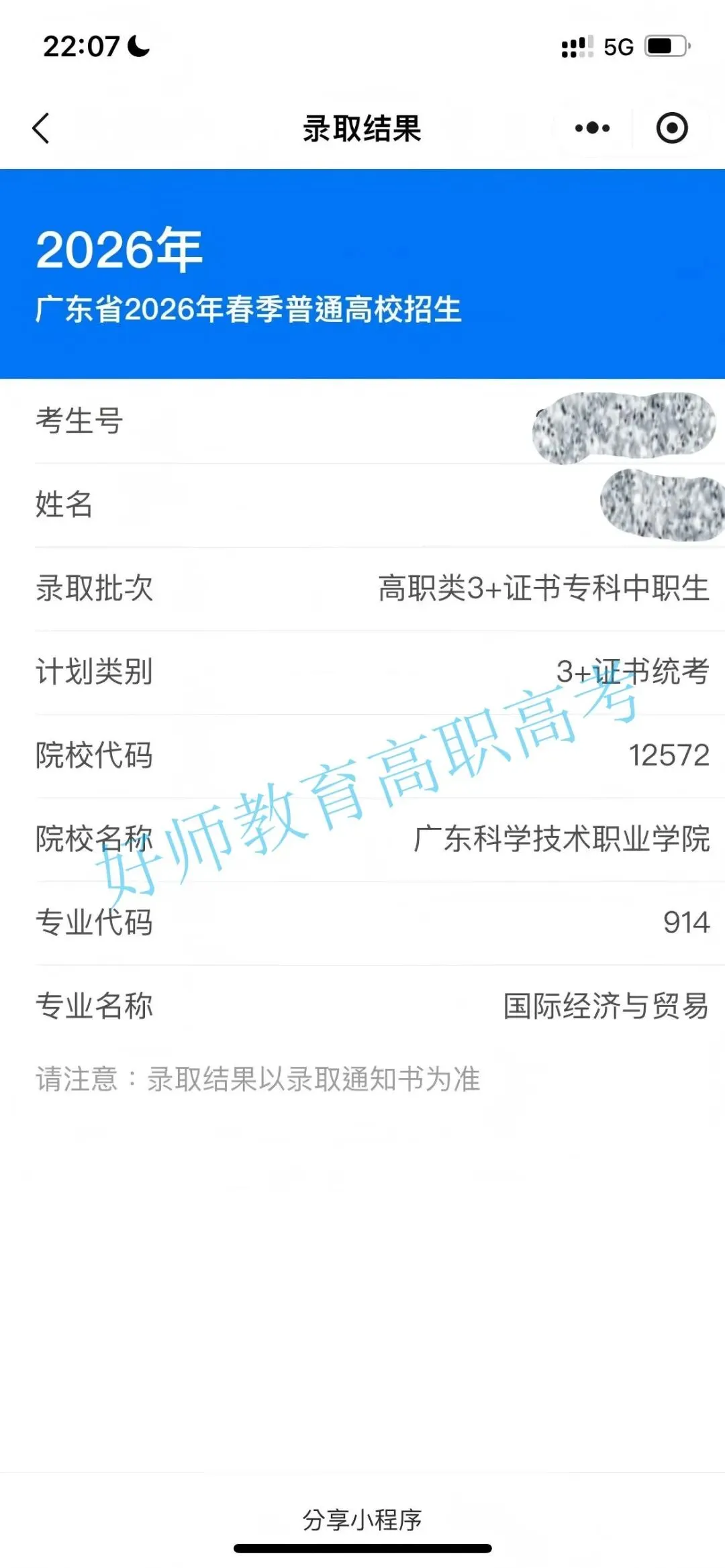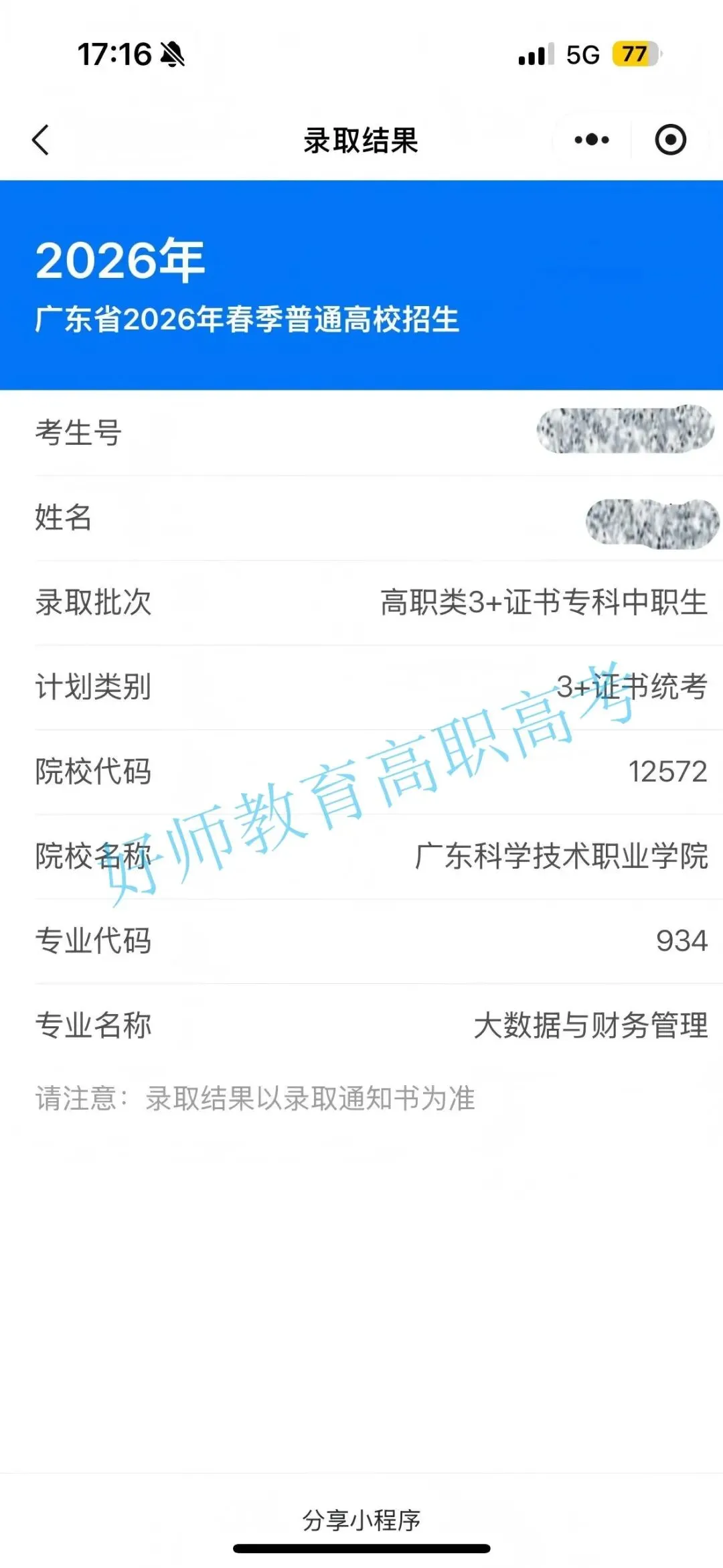 录取到广东科学职业技术学院!