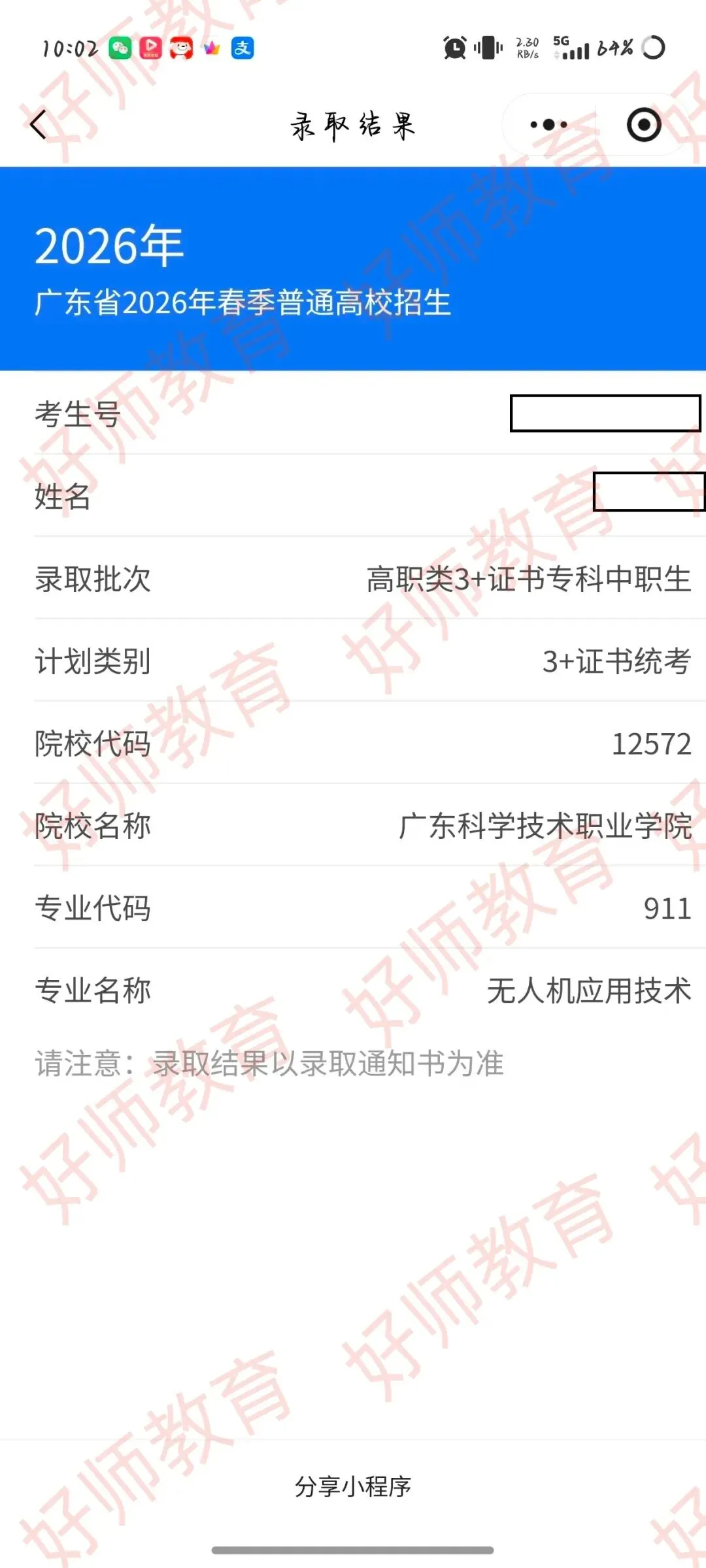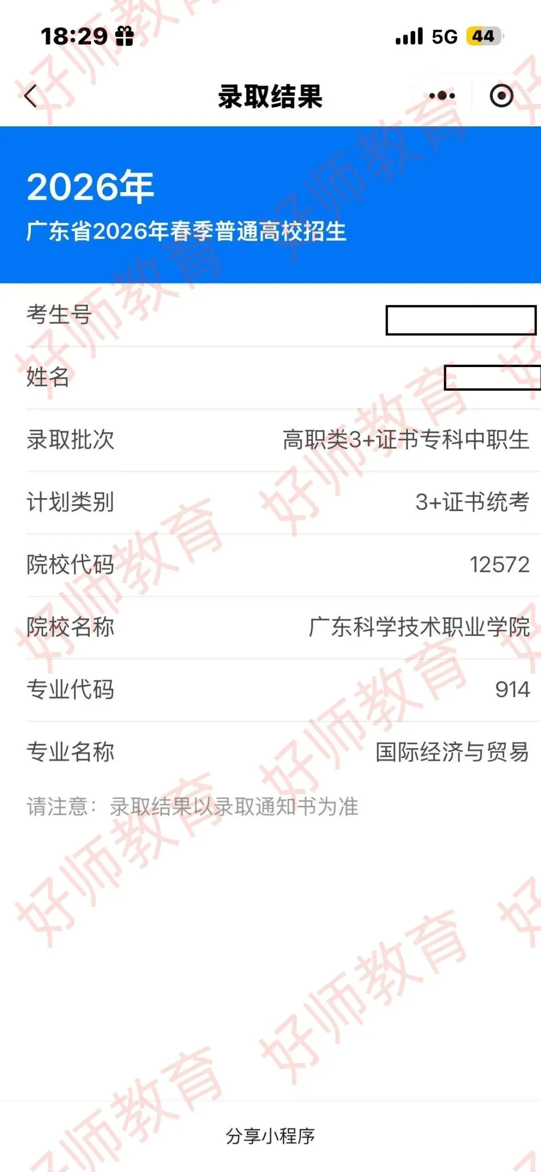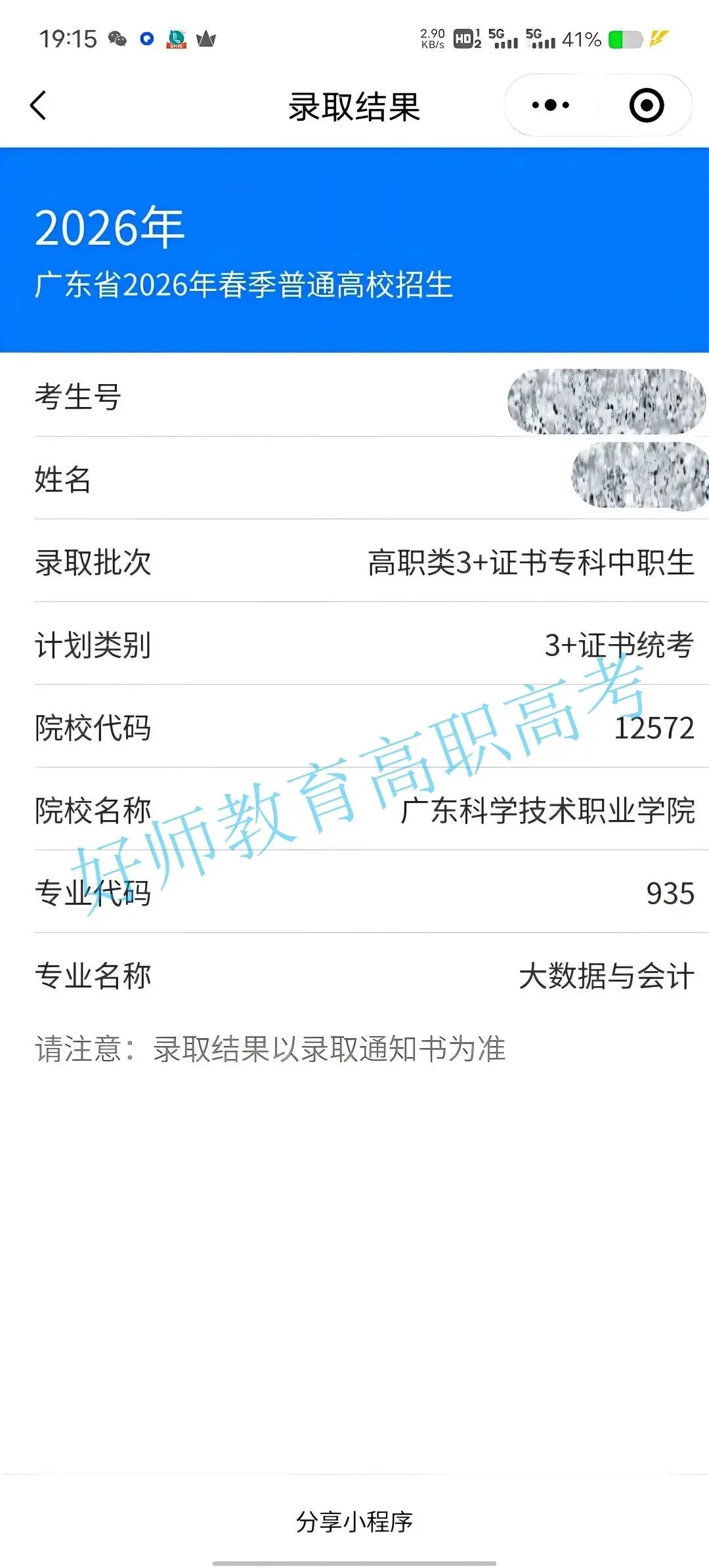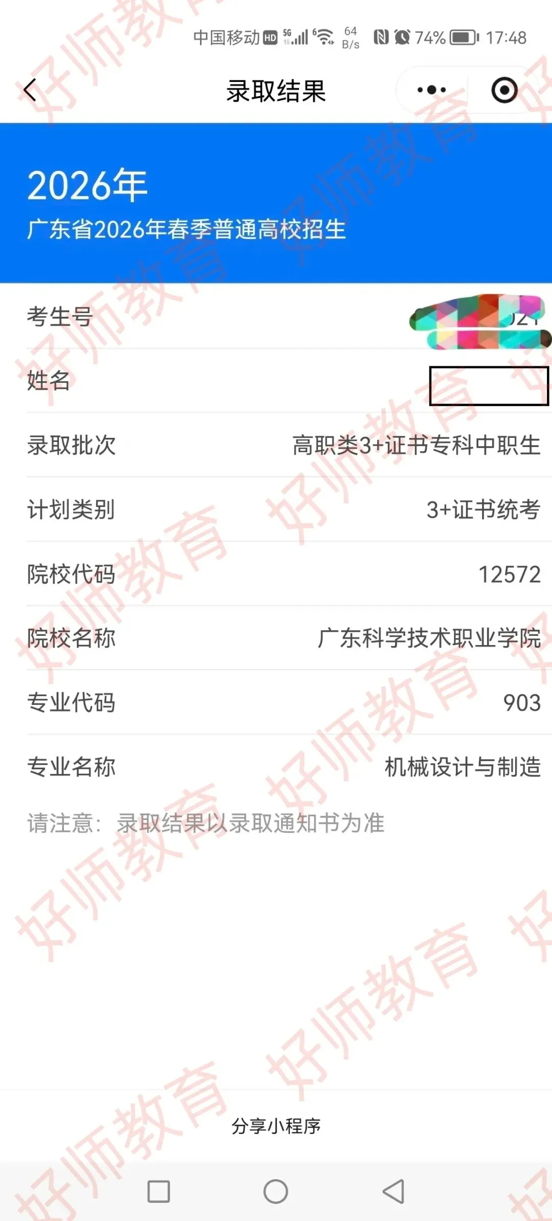 录取到广东科学职业技术学院!